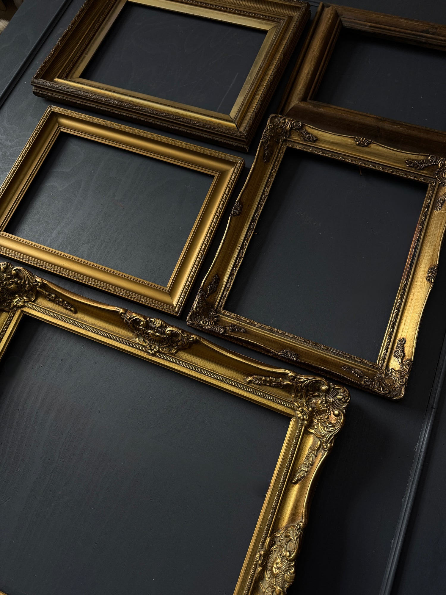 We provide a selection of intricately detailed vintage frames in a range of sizes. The more elaborate and aged the frame, the greater its distinct value. You can pick from our current collection or let us assist you in sourcing and styling a one-of-a-kind arrangement. Every set is thoughtfully assembled to add classic sophistication, depth, and character to your home.