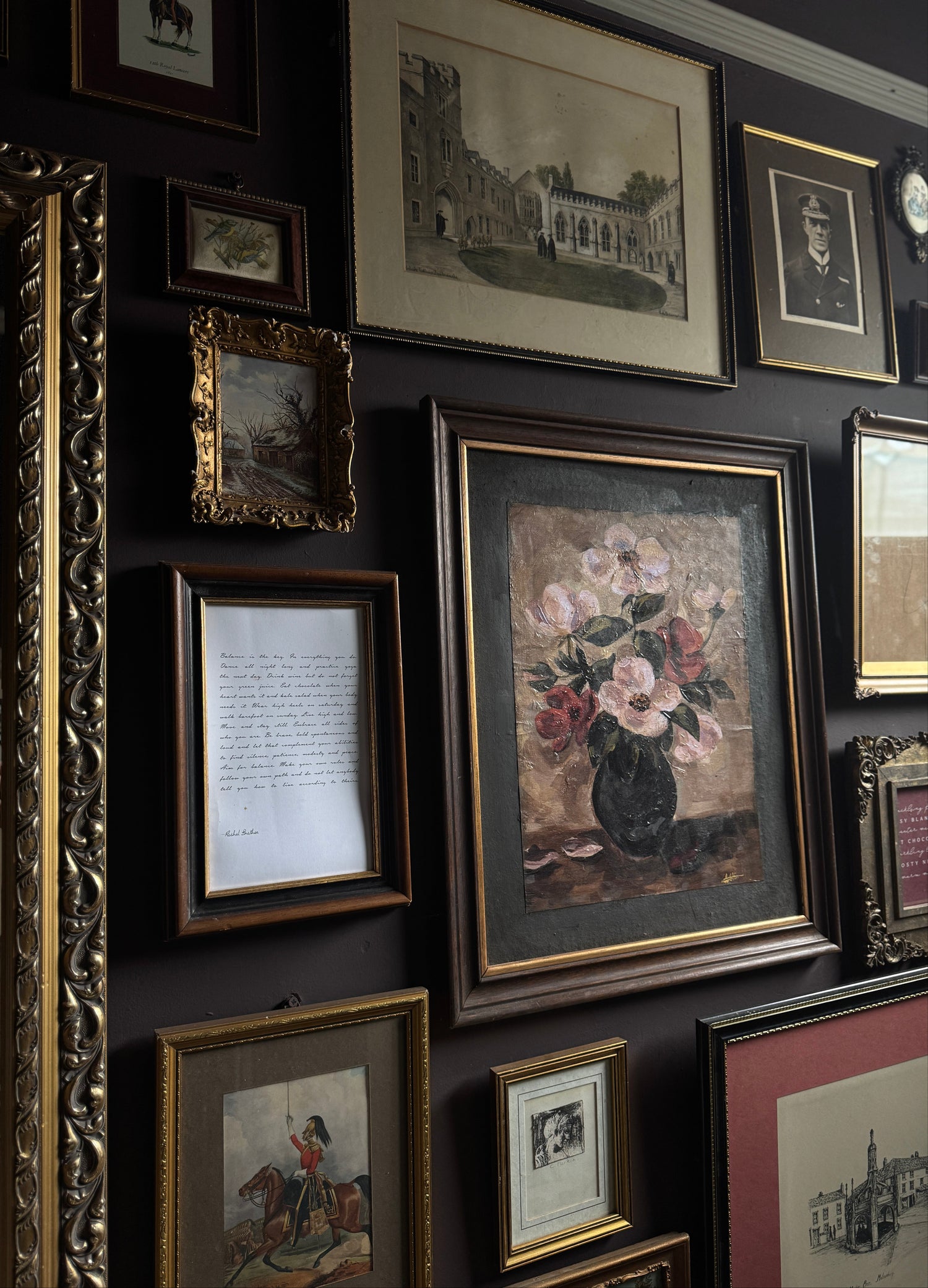 Let us transform your empty walls into captivating displays that reflect your unique story and personality. We specialise in creating custom gallery walls featuring vintage artwork, decorative frames, and carefully chosen accents — all thoughtfully styled to match your colour scheme, personal style, and interior vision. Whether you dream of an elegant arrangement of antique oil paintings, a dramatic wall of monochrome photography, or an eclectic mix of frames, mirrors, and cherished keepsakes, we’re here to make the process seamless and creatively fulfilling.