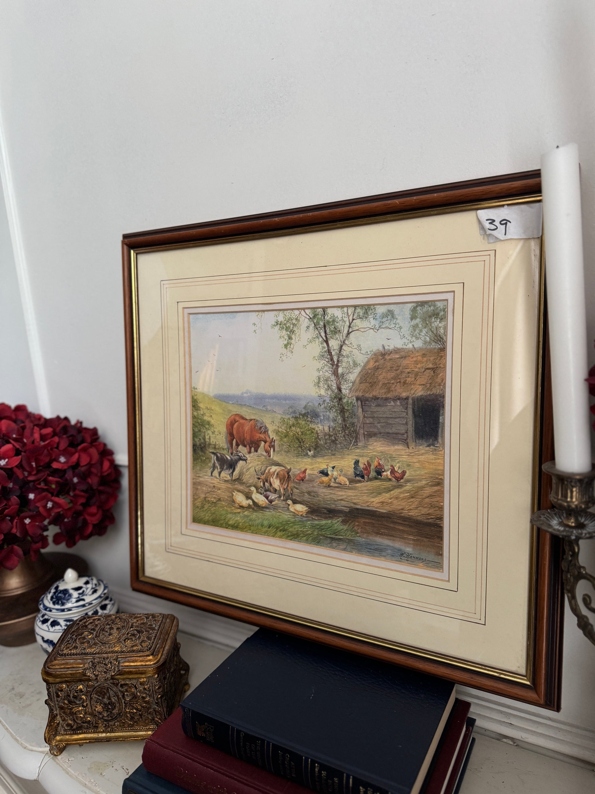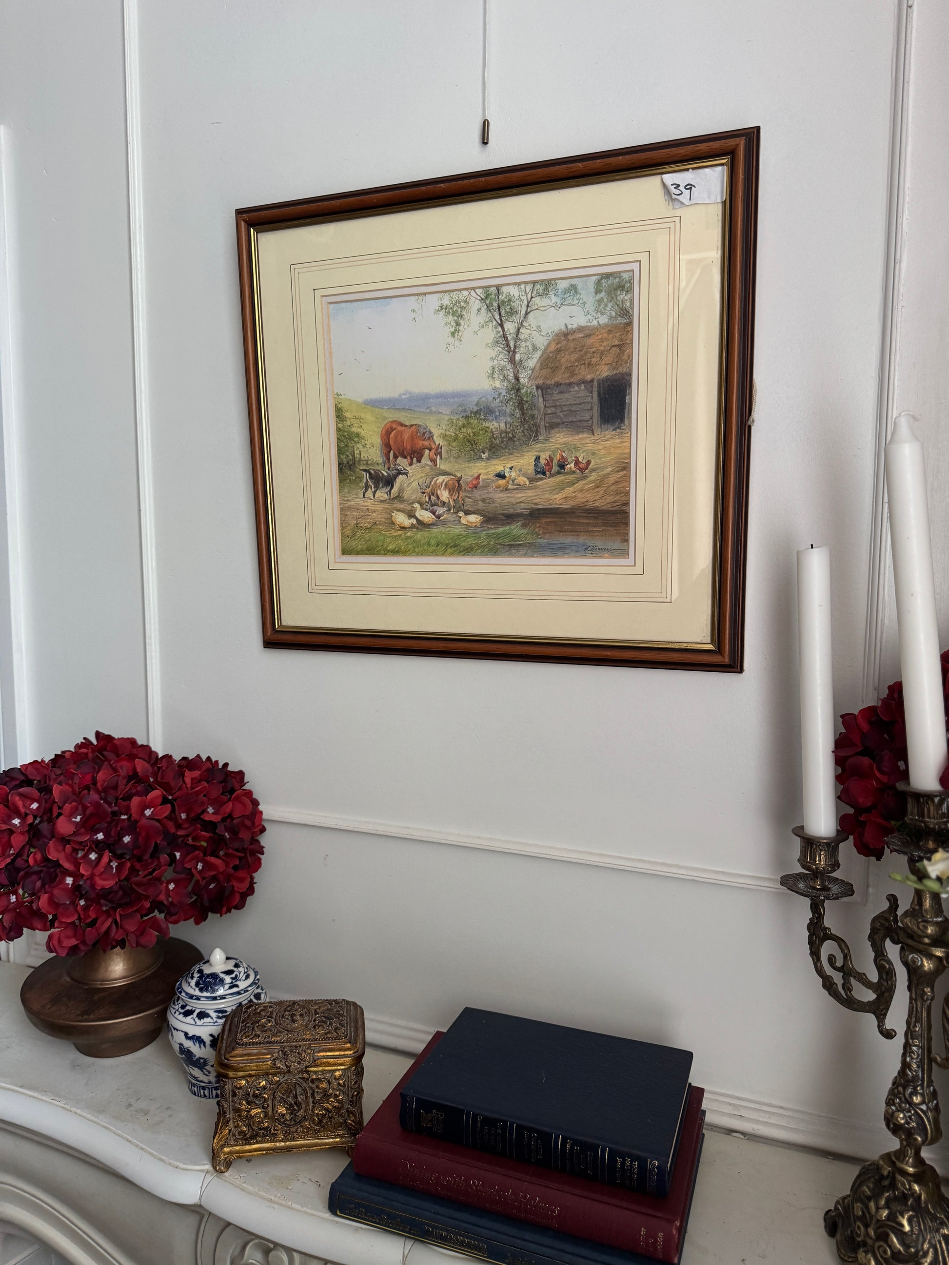 Step into a peaceful countryside moment with this original rural scene by A.D. Bell, also known as Horace Hammond. Known for his delicate brushwork and atmospheric English landscapes, this artwork beautifully captures the serene essence of rural life—rolling fields, rustic cottages, and gentle light washing over the scene. A timeless piece that evokes nostalgia and calm, perfect for traditional interiors or collectors of classic British art.