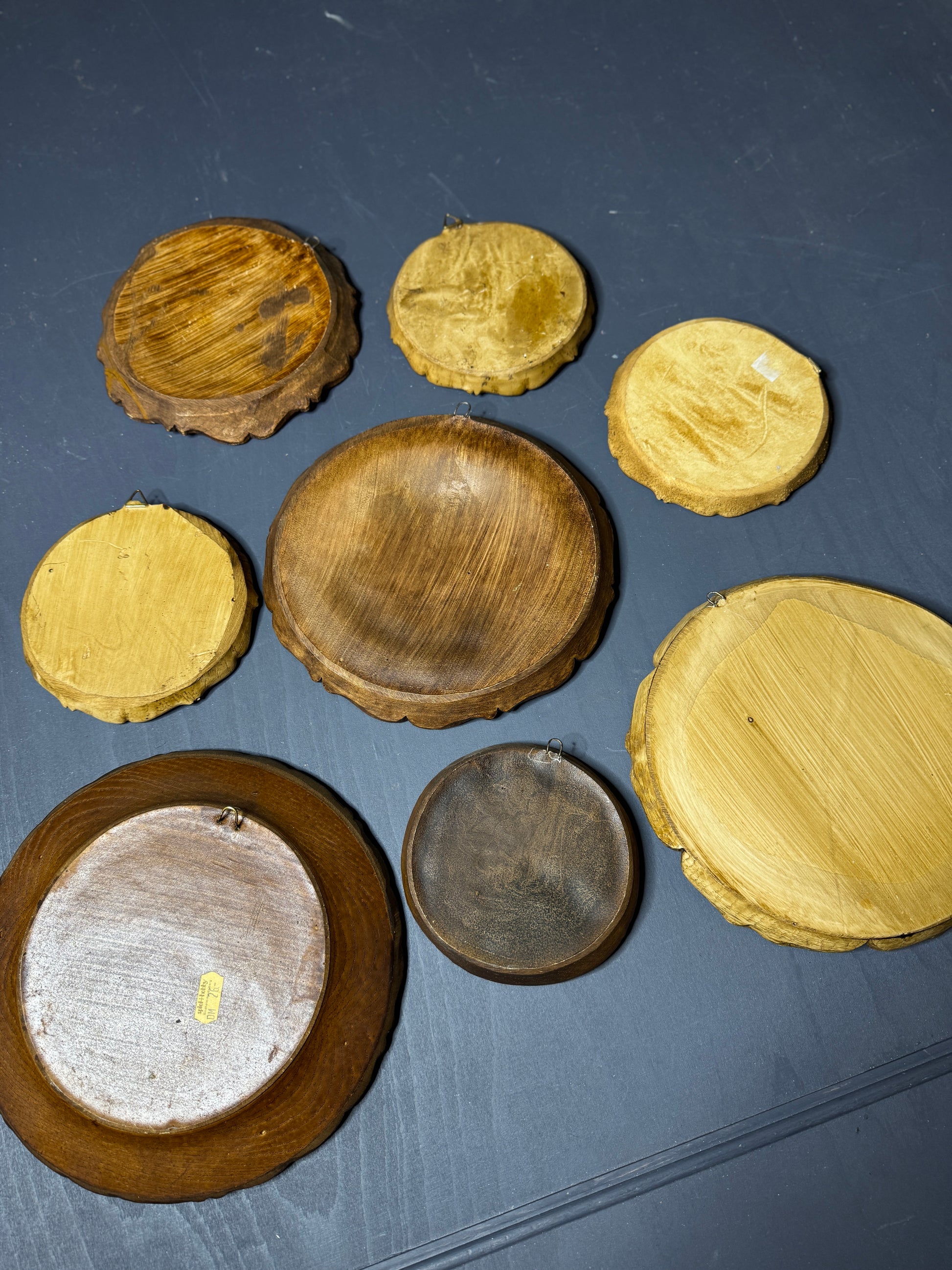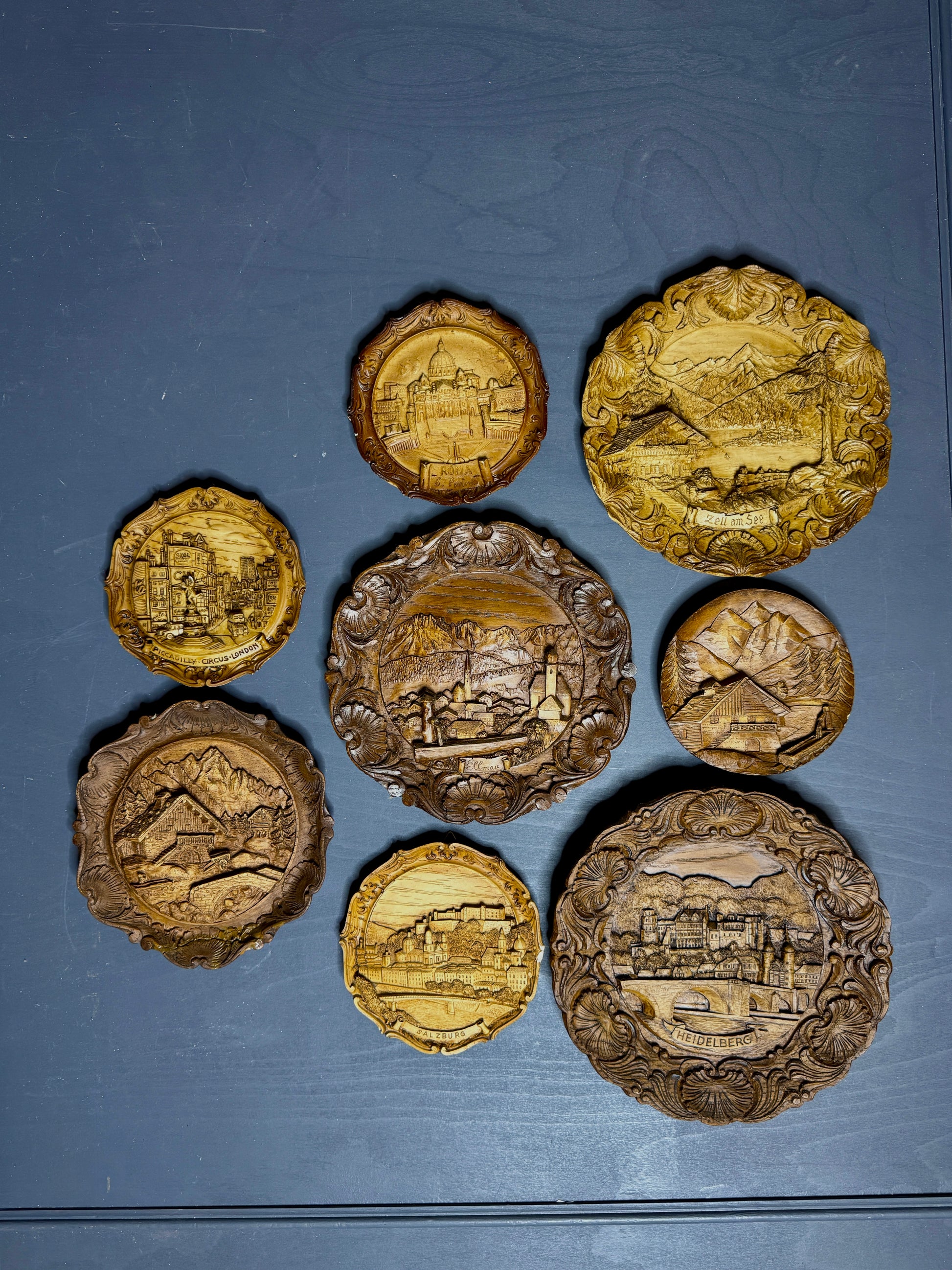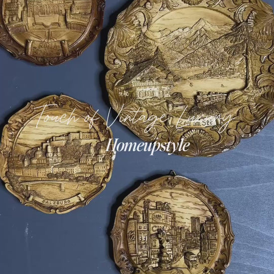 Authentic 1980s Austrian hand-carved wood plaques