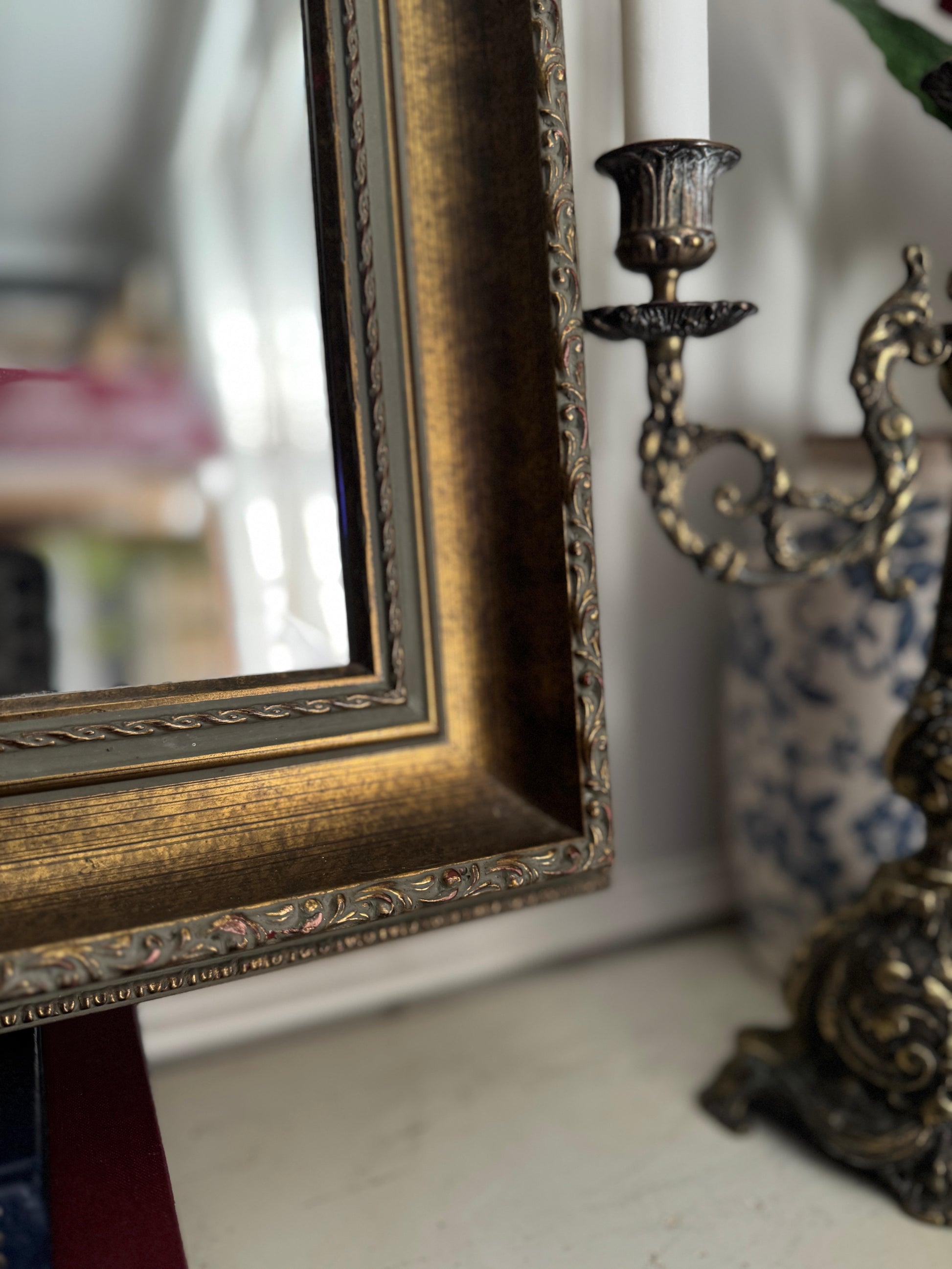 Antique Bronze Effect Wooden Gilt Thick Trimmed Bevelled Mirror