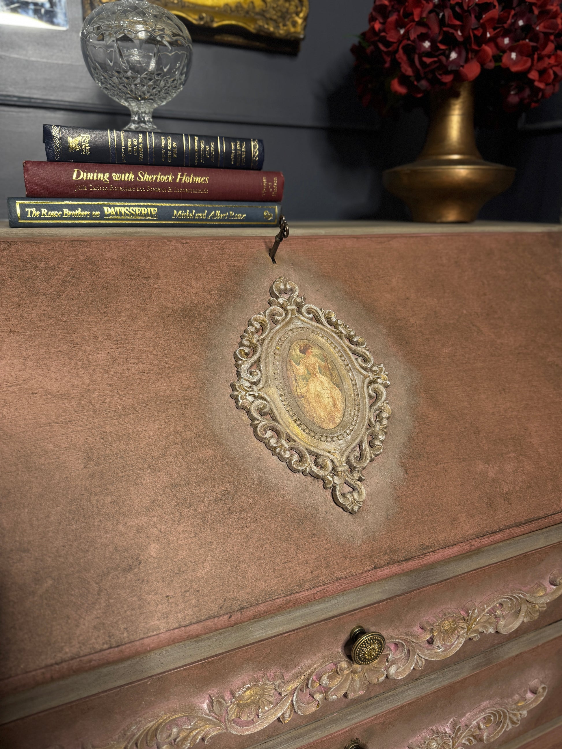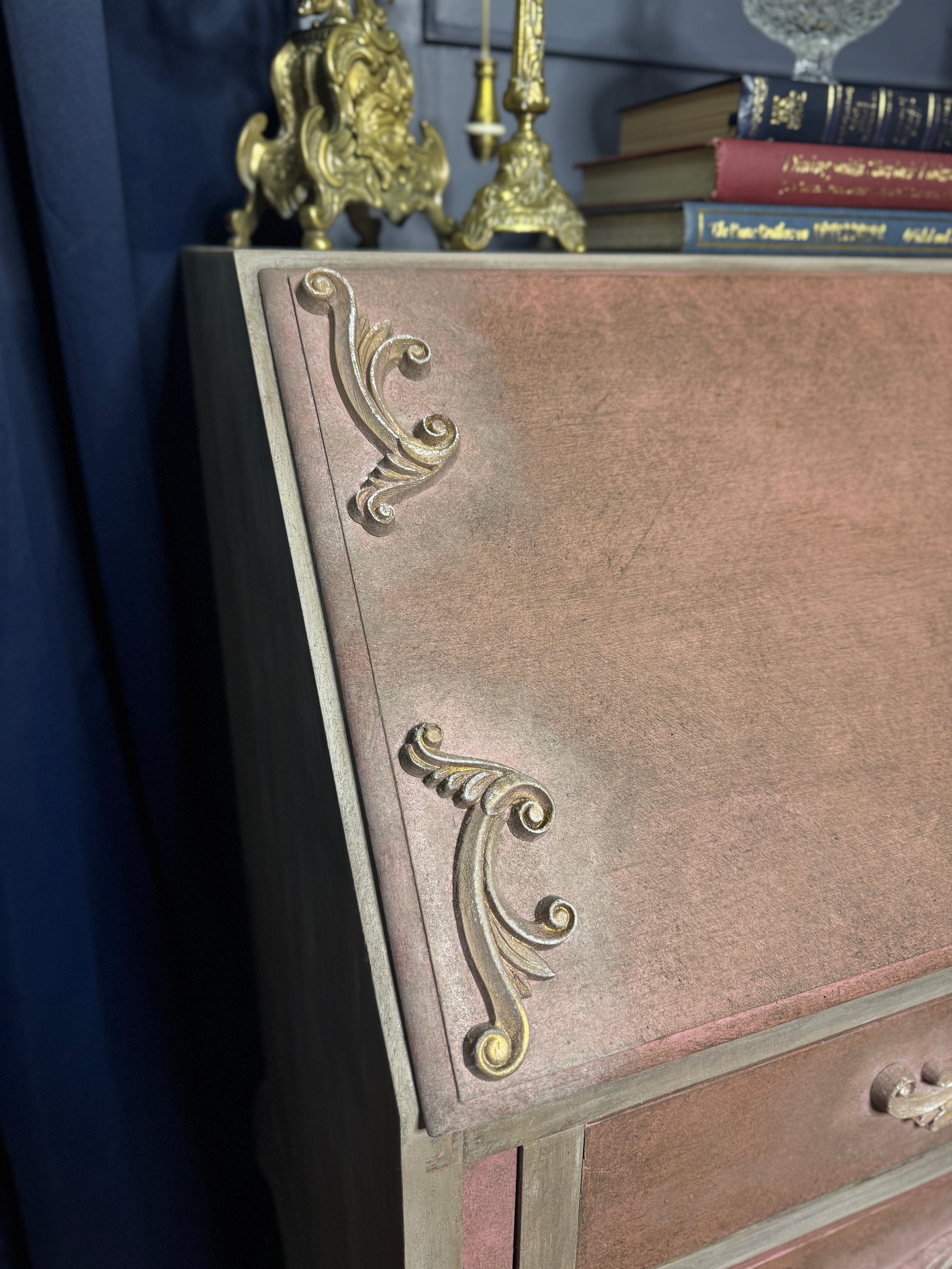 Antique Bureau Desk — French Romantic Style - Distressed Chalk Paint Finish
