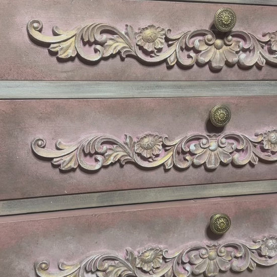 This bureau has been carefully upcycled using multiple layers of chalk paint, blended to create a soft distressed finish. Decorative wooden mouldings have been added to elevate the design, resulting in a truly unique statement piece.