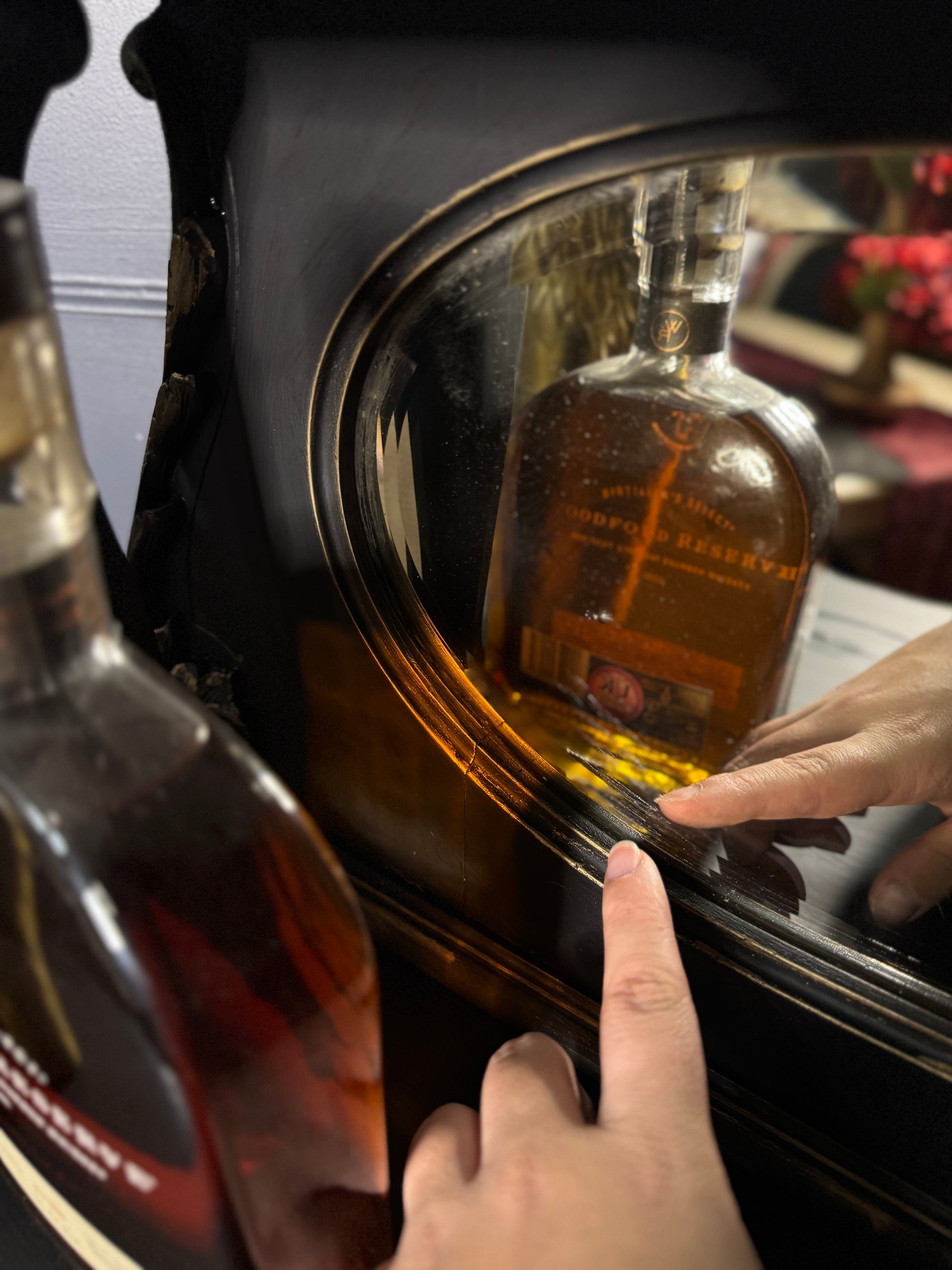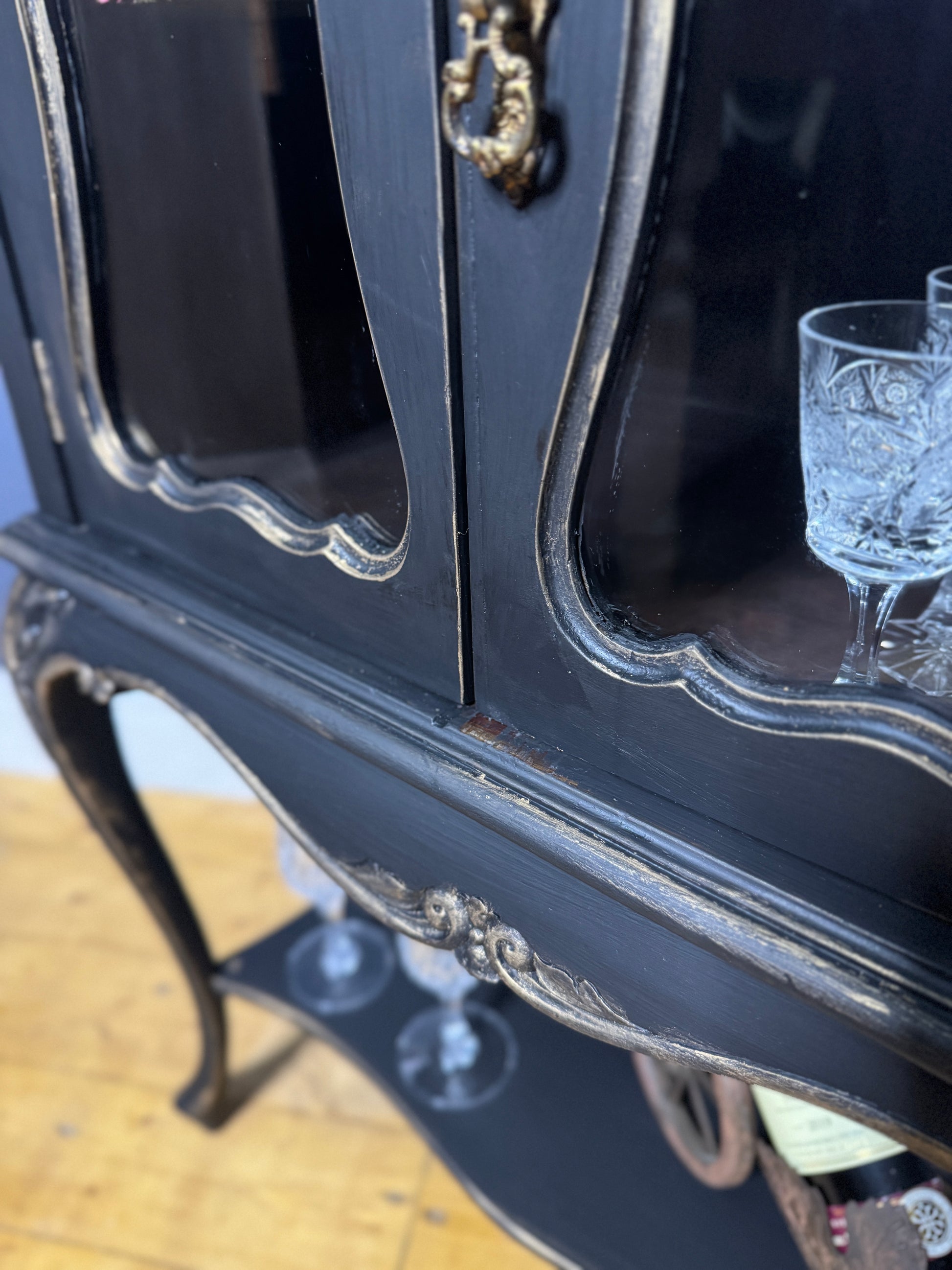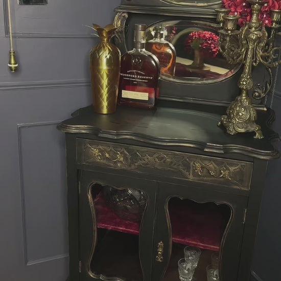 The result is a bold, luxurious look that elevates the cabinet while preserving its authentic antique charm.