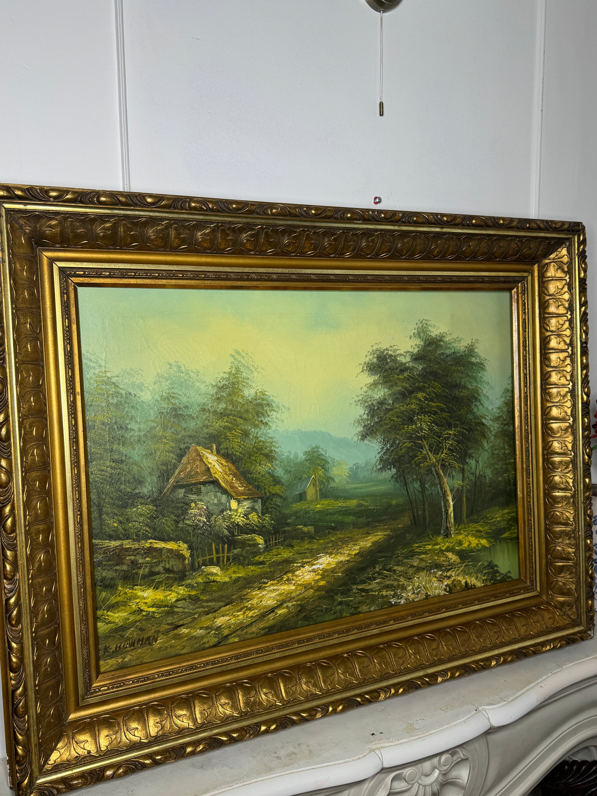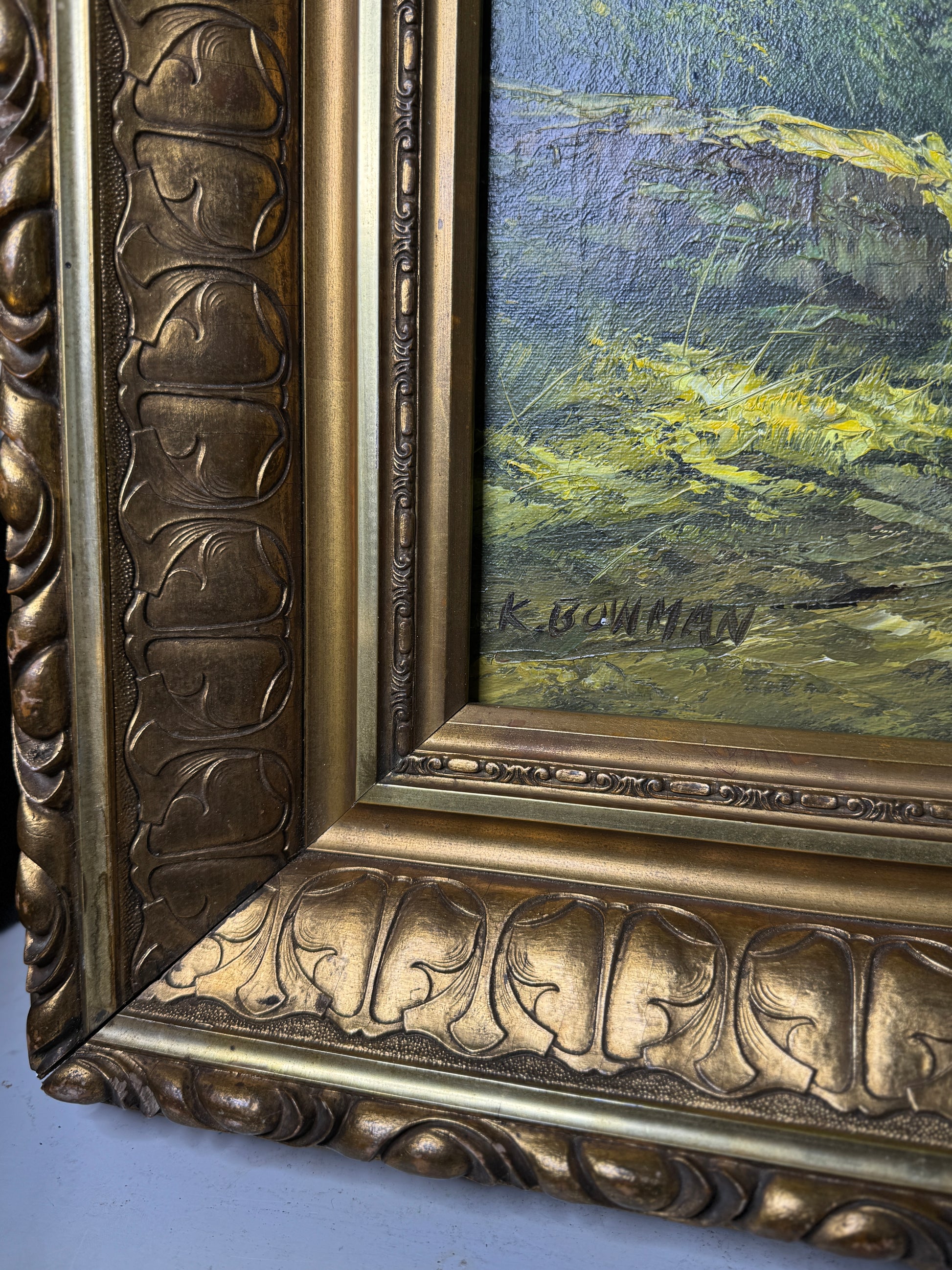 Antique Ornate Gold Frame with 1970s K. Bowman Original Oil Painting