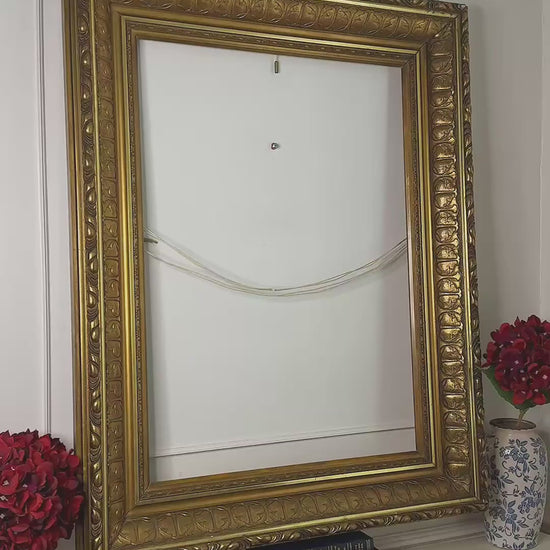 Bring timeless grandeur into your home with this extremely heavy Versailles-style gilt frame paired with an original 1970s oil painting by K. Bowman. This ornate gold frame is a true one-of-a-kind piece, featuring exceptional craftsmanship, intricate detailing, and substantial weight that speaks to its quality and age.