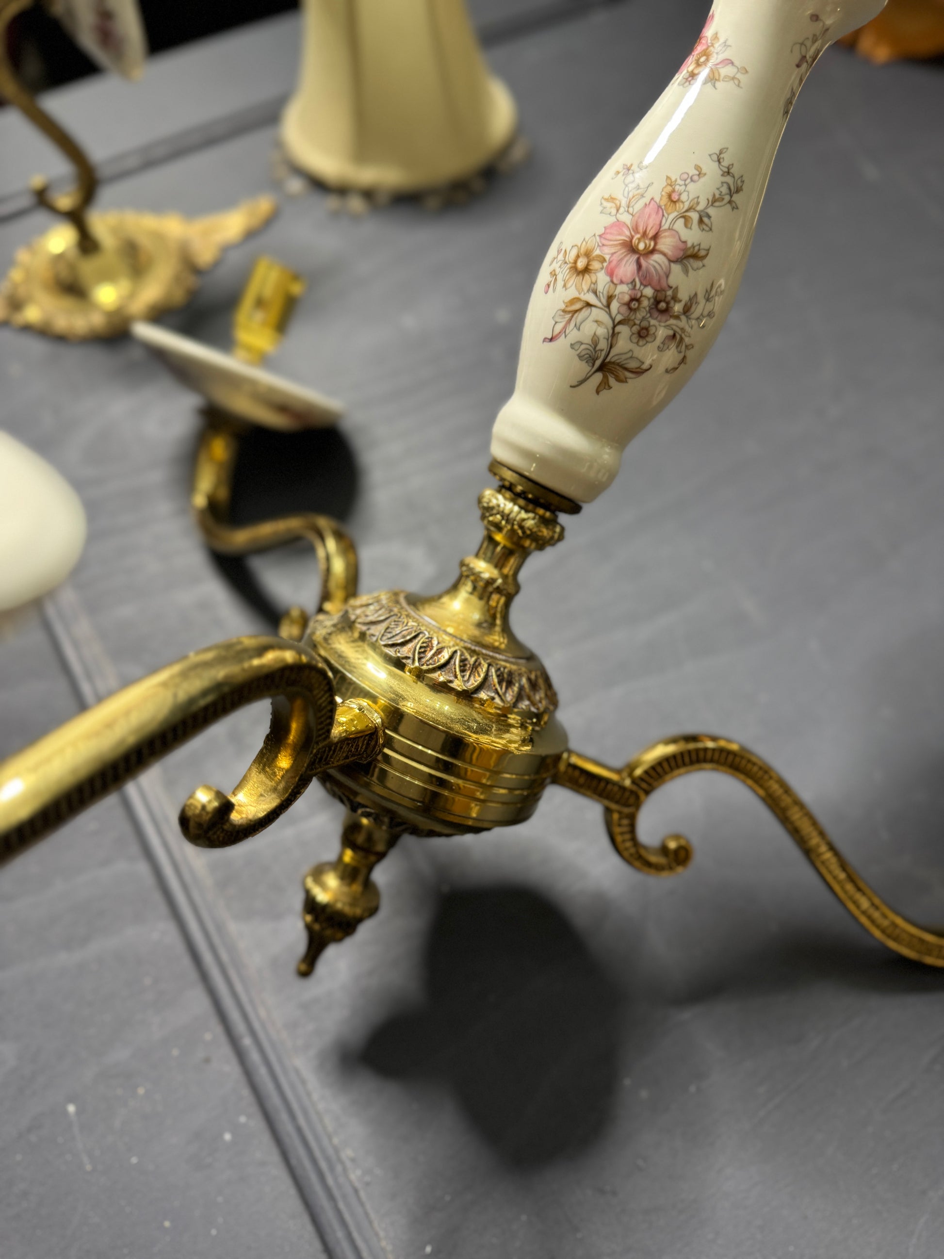 Matching Capodimonte-style ceramic and brass design