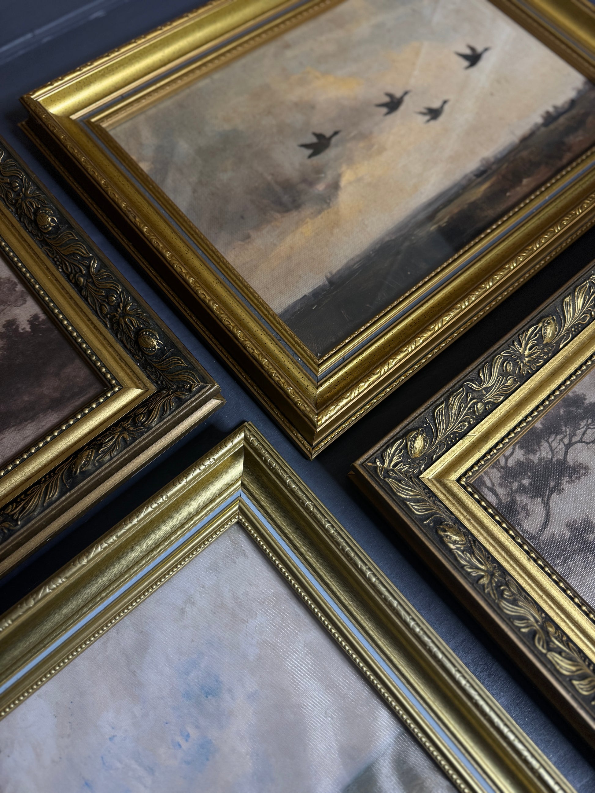 Château Elegance Wall Set – Vintage Gold Gilt Frames with Moody Dark Themed Prints