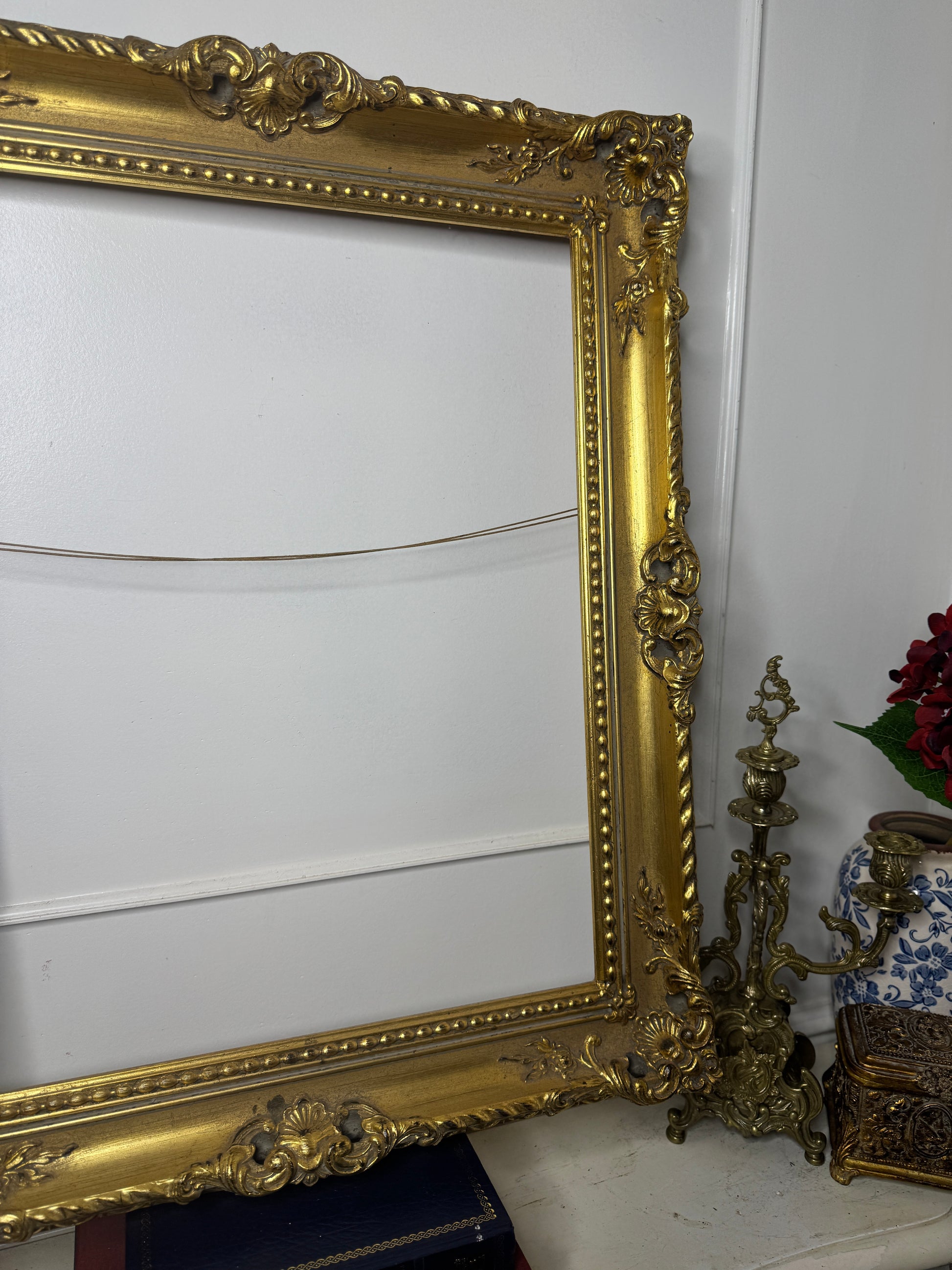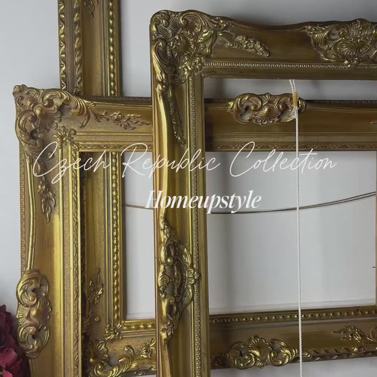 Bring a touch of European elegance and historic charm to your home with this vintage Czech gold gilt ornate frame. Sourced from Bohemia, this exquisite frame features intricate carvings and luxurious detailing, making it a statement piece for any gallery wall, artwork, or mirror.