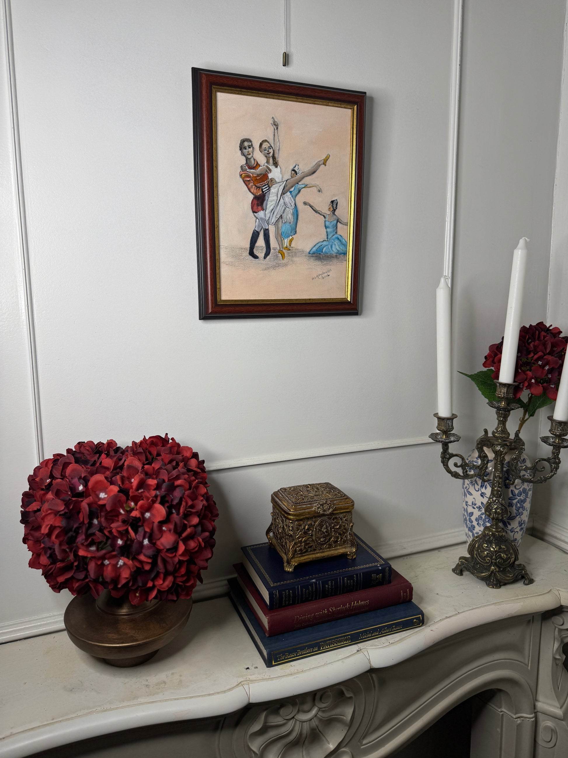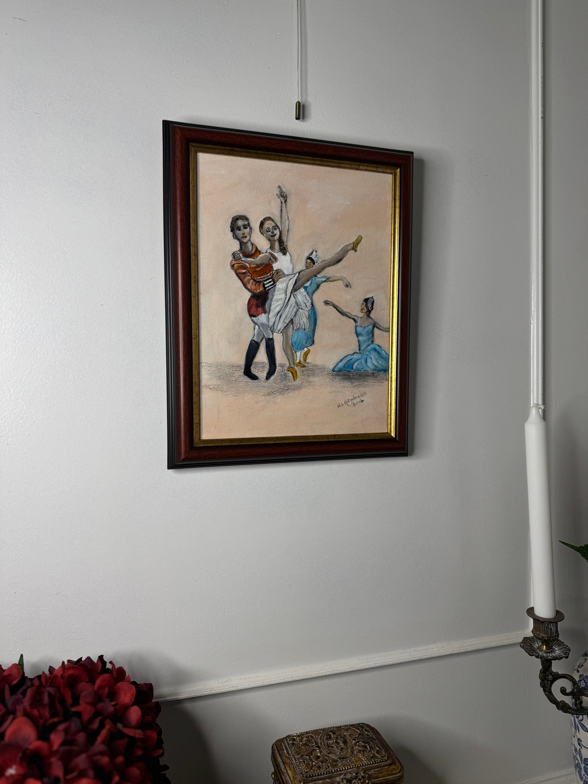 This original oil painting by British artist N.G. Reynolds beautifully captures the elegance, poise, and movement of ballet dancers. The composition highlights the fluidity of dance, the delicate posture of the dancers, and the expressive artistry of Reynolds’ brushwork.