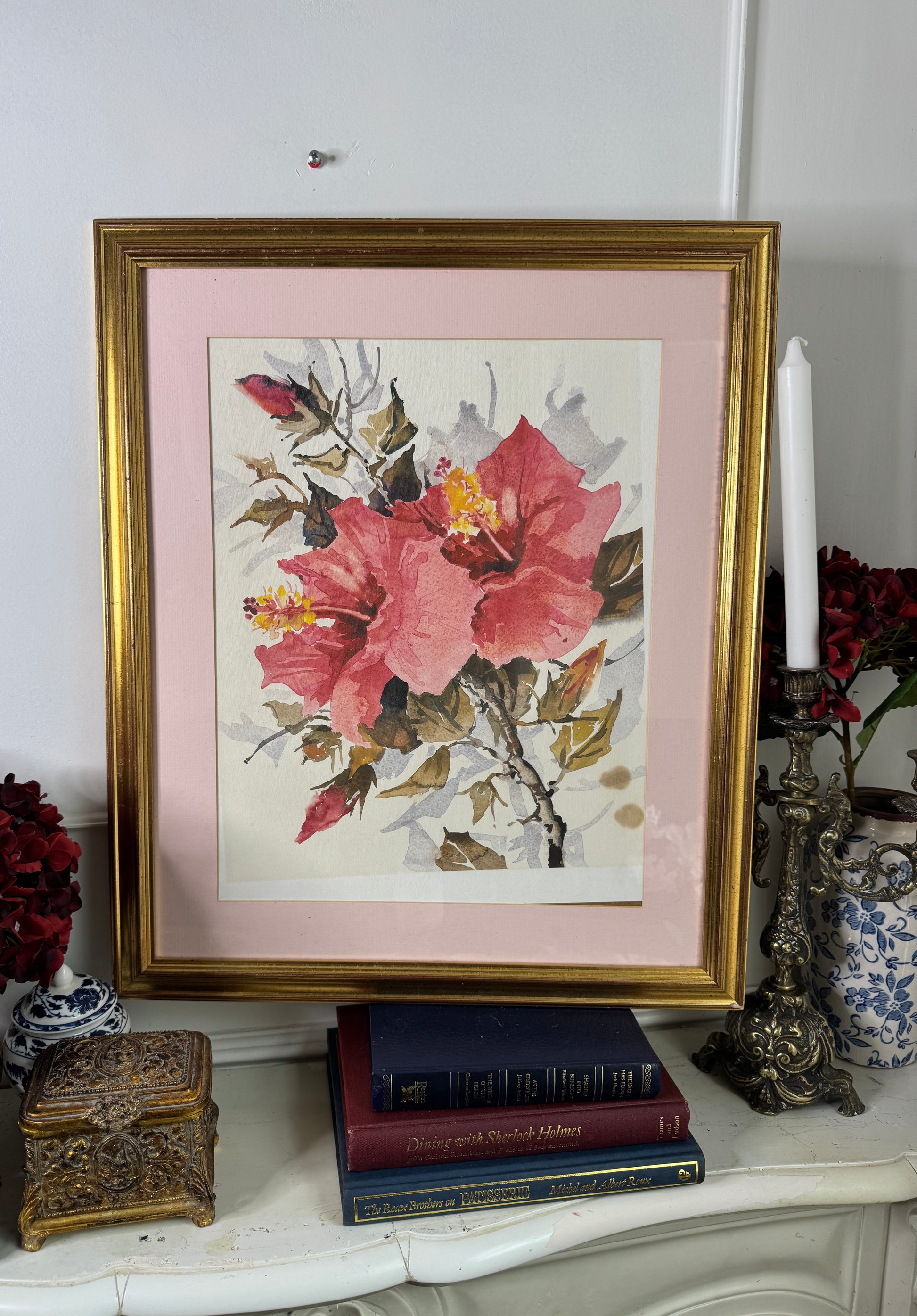 A stunning vintage large floral watercolour presented in a traditional gold frame. This piece exudes timeless elegance and natural beauty.