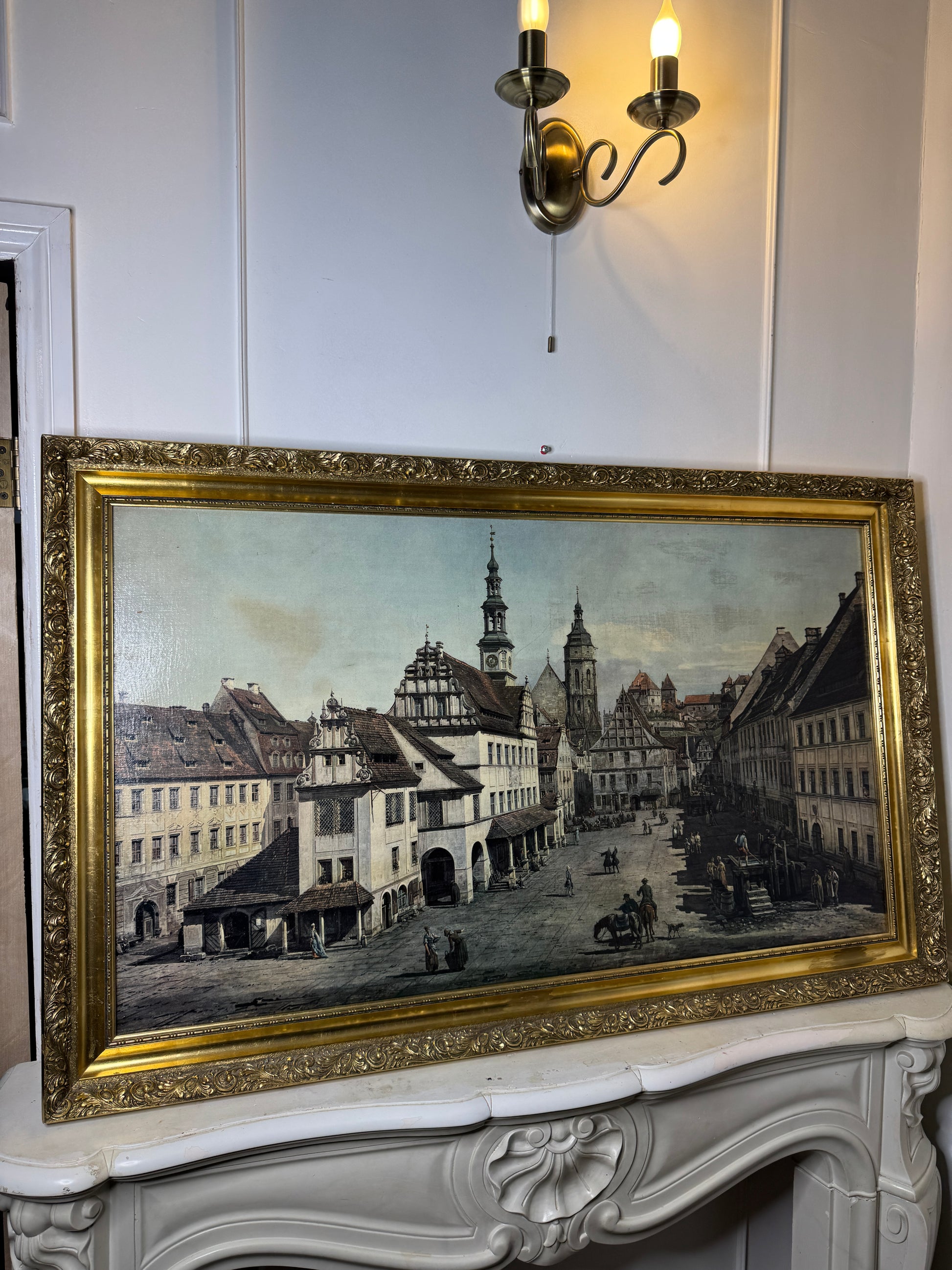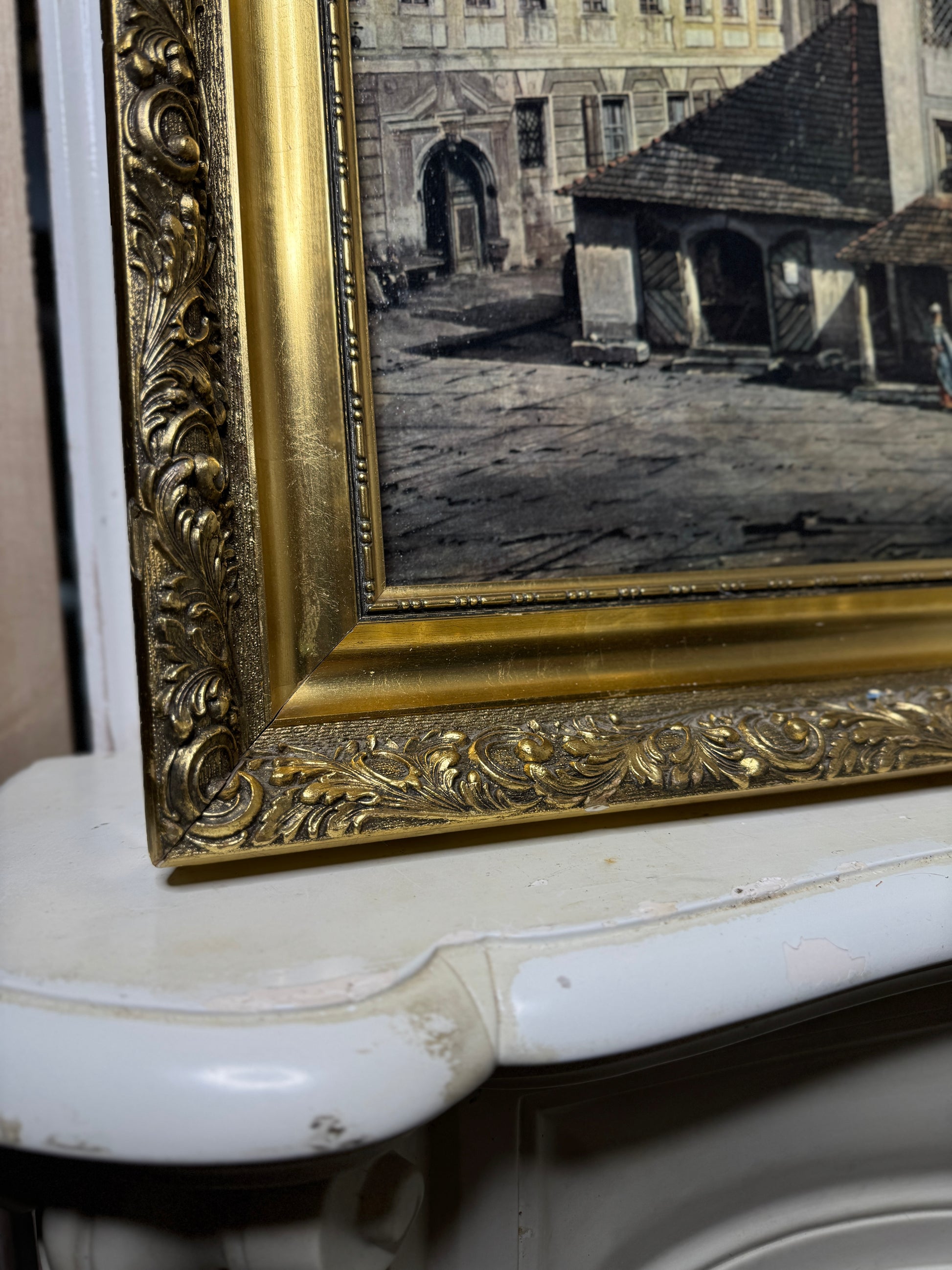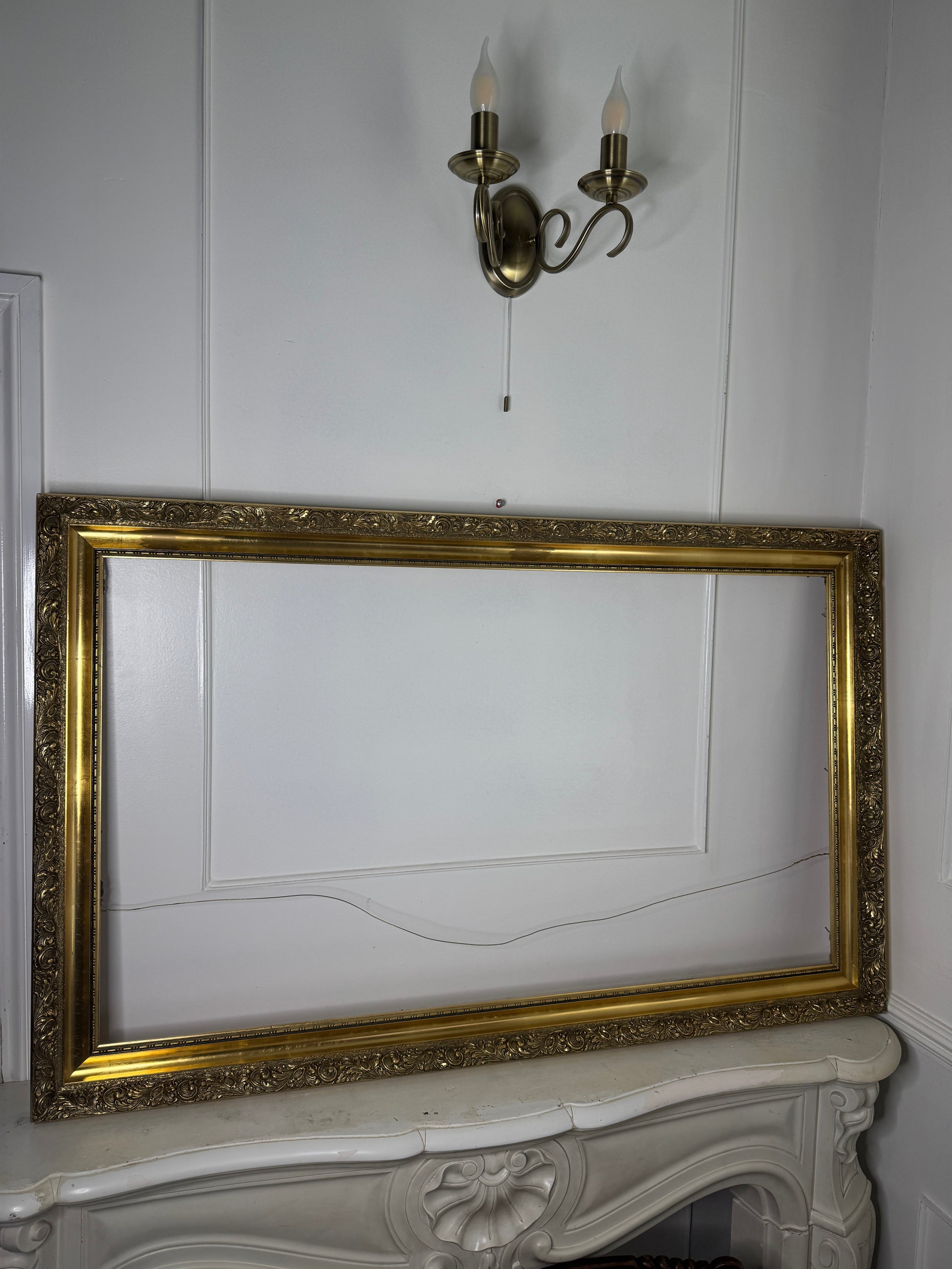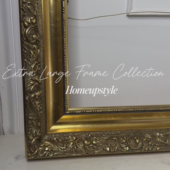 Elevate your interior with this Extra-Large Ornate Frame Encased in a richly detailed gilt frame, this piece exudes vintage grandeur and makes a striking statement on any wall.