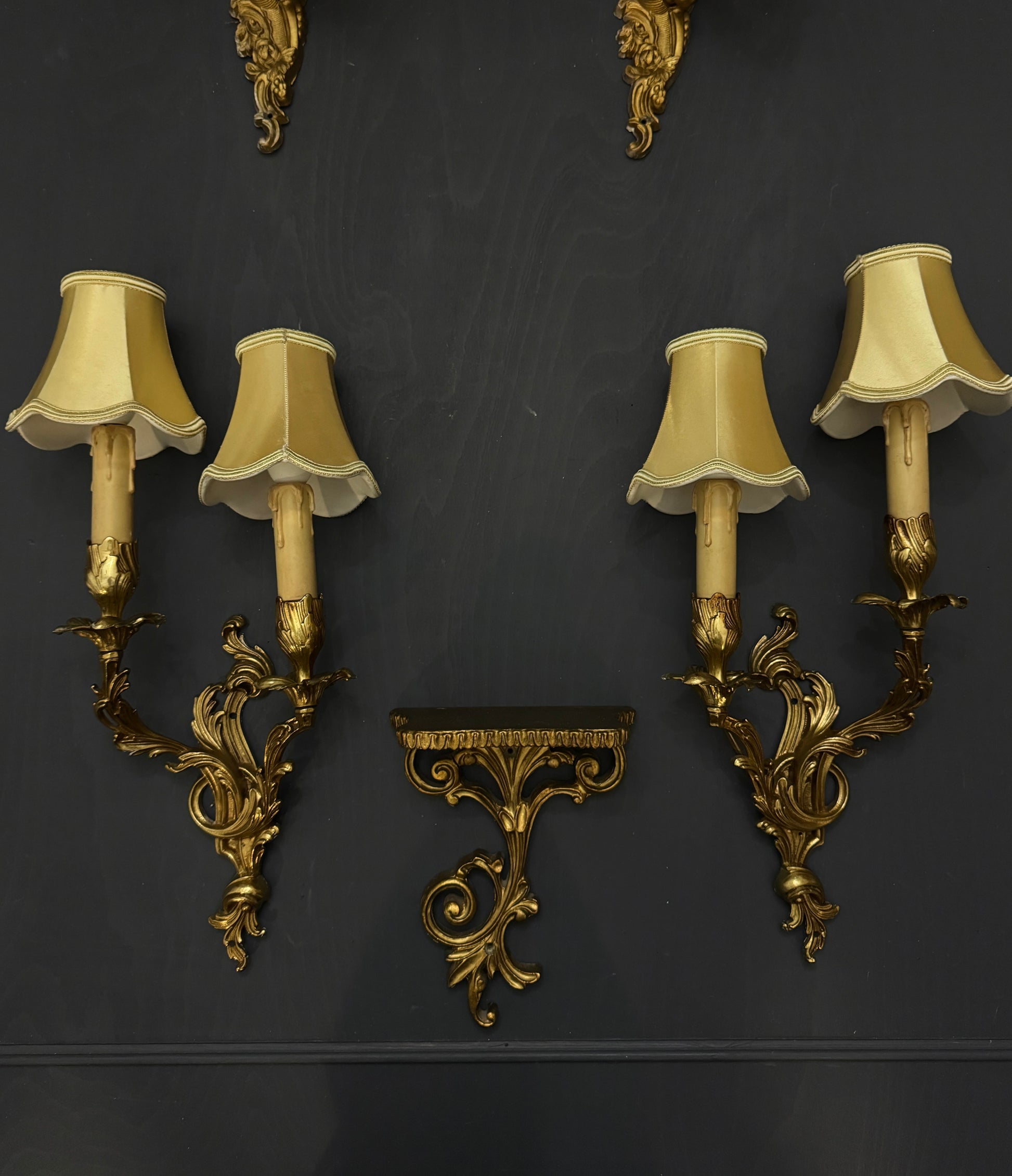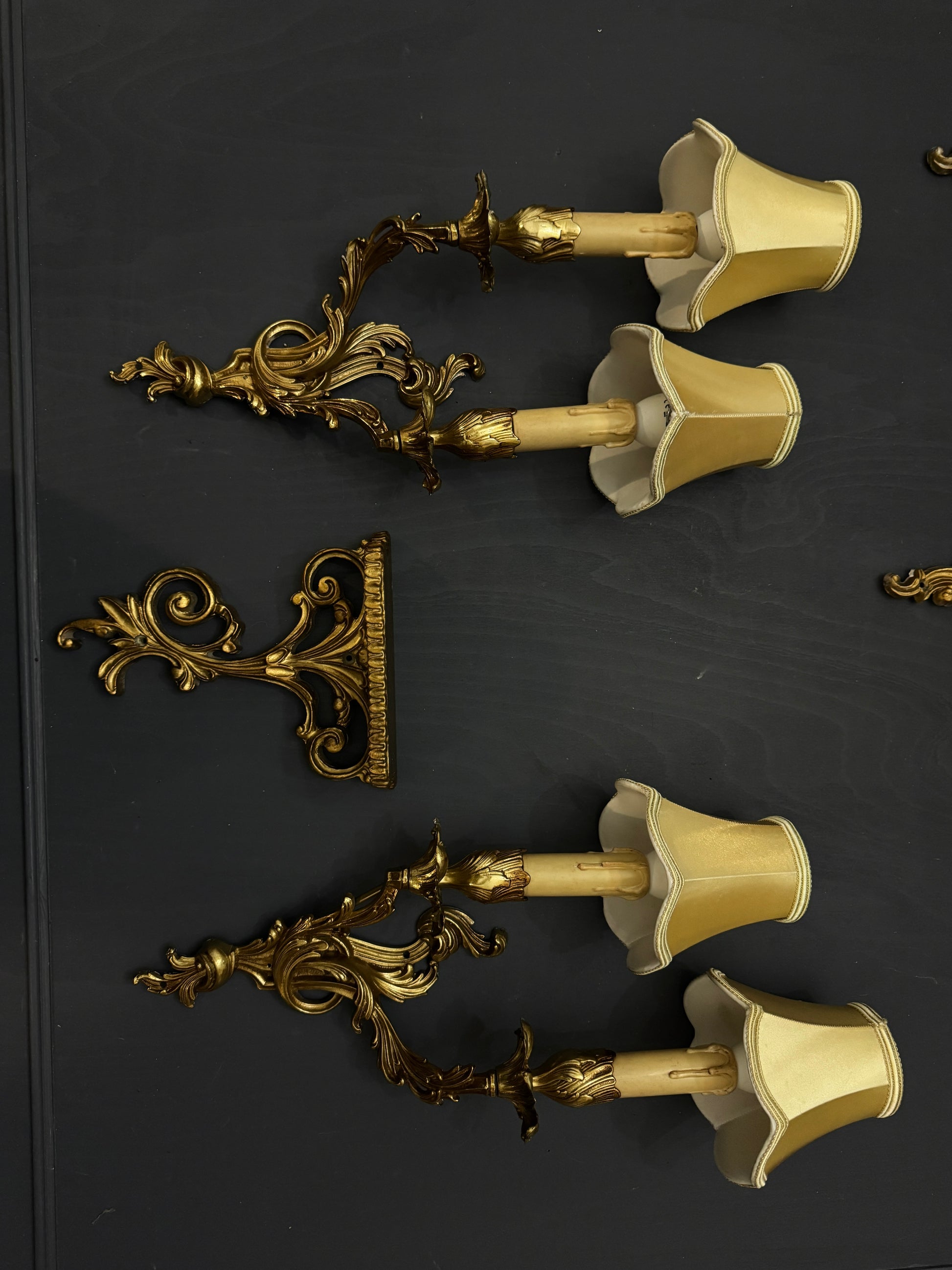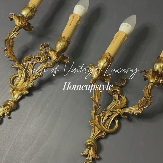 Bring timeless elegance and French charm into your home with this stunning set of vintage Louis-style wall lights and gilded wall sconce.