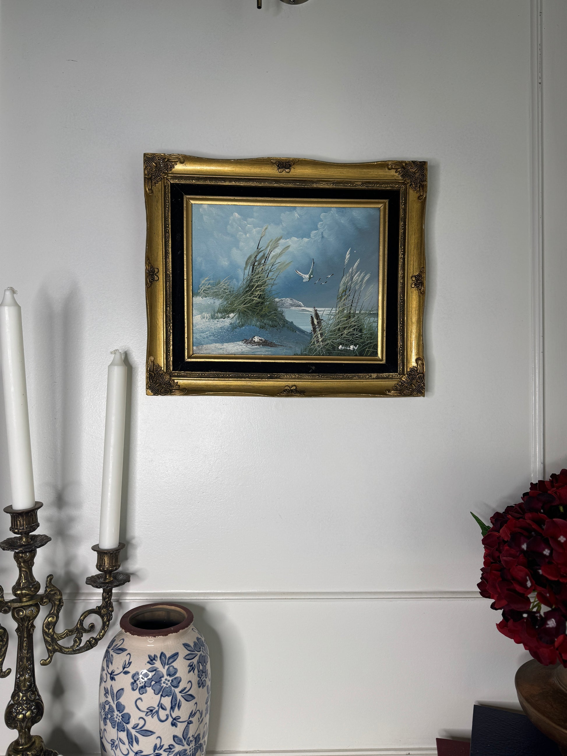 Gilded Reflections-Small Oil Painting Signed in Antique Gilt Frame