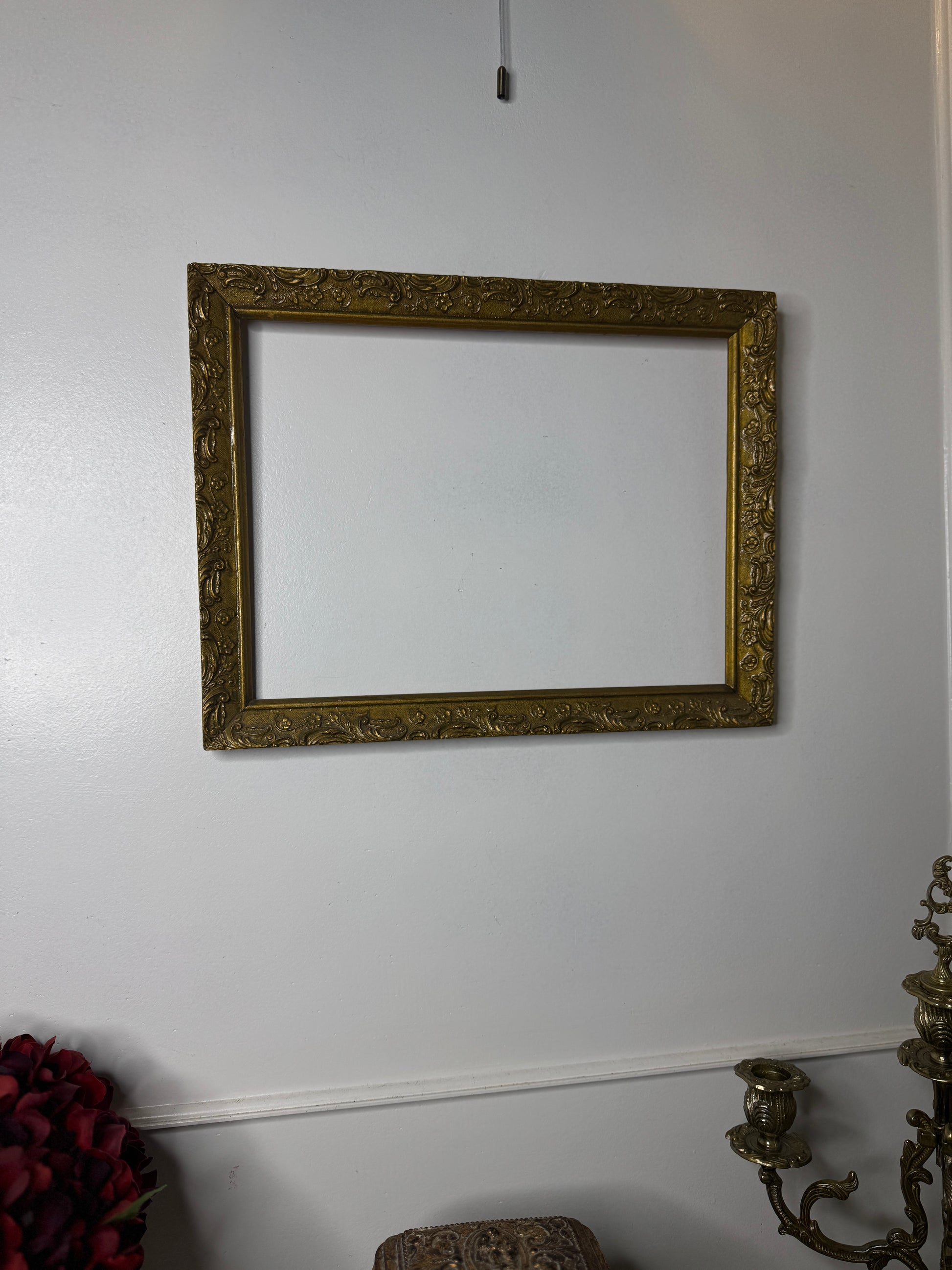Golden Grandeur – A stunning vintage Hungarian ornate gold frame sourced from Budapest. Features intricate detailing and timeless European elegance, perfect for showcasing artwork, mirrors, or as a statement décor piece in any sophisticated interior.