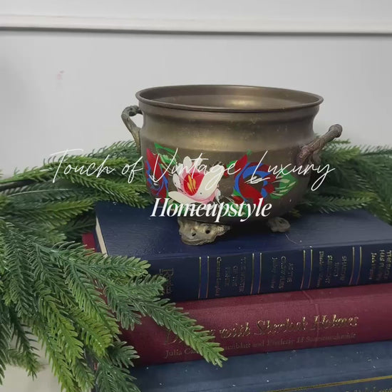 Add a touch of warmth and character to your home with this vintage brass pot, beautifully hand-painted with a folk-inspired floral pattern. Perfect for displaying plants, dried flowers, or as a charming decorative accent, this piece blends rustic craftsmanship with timeless artistry.