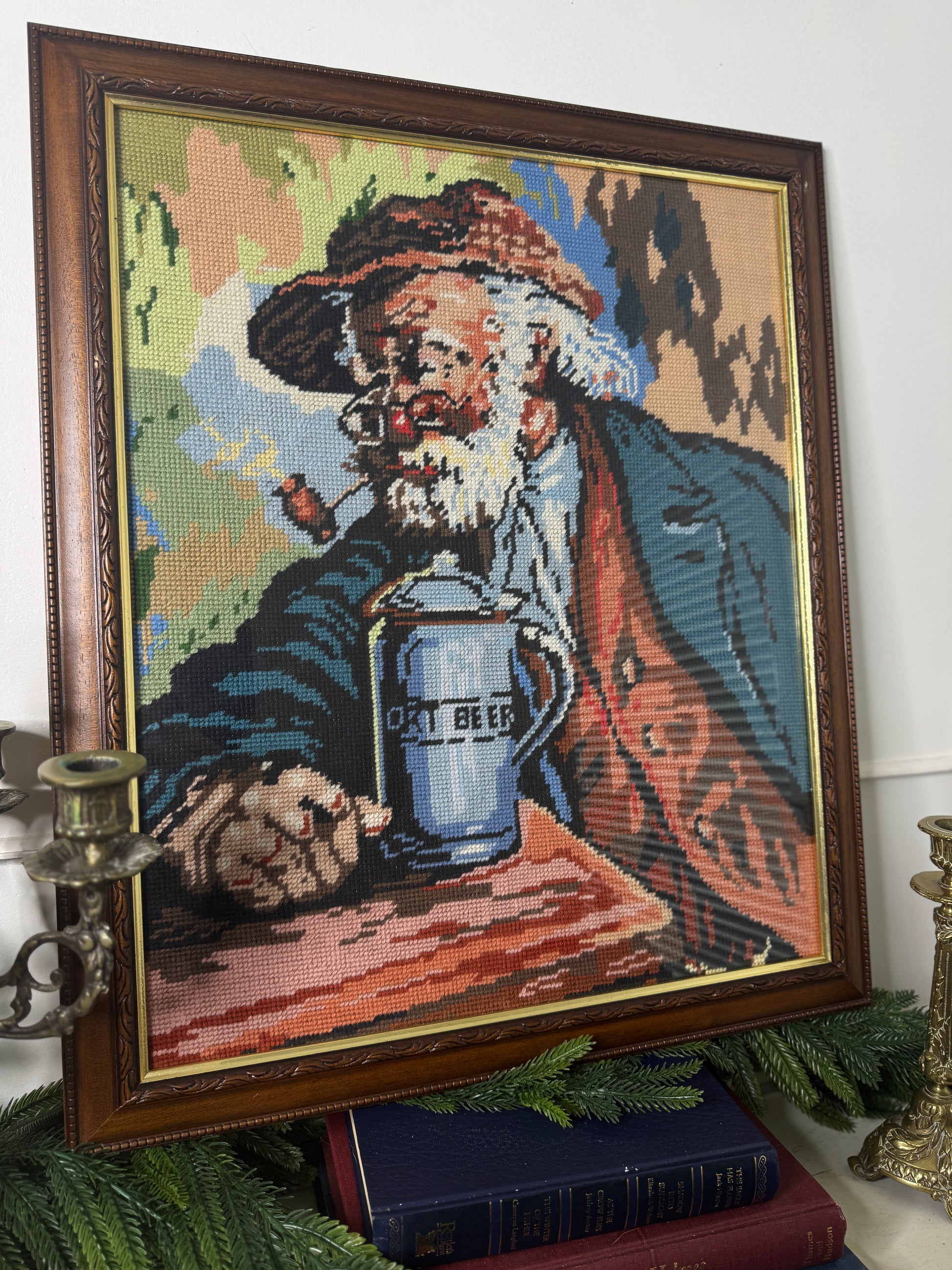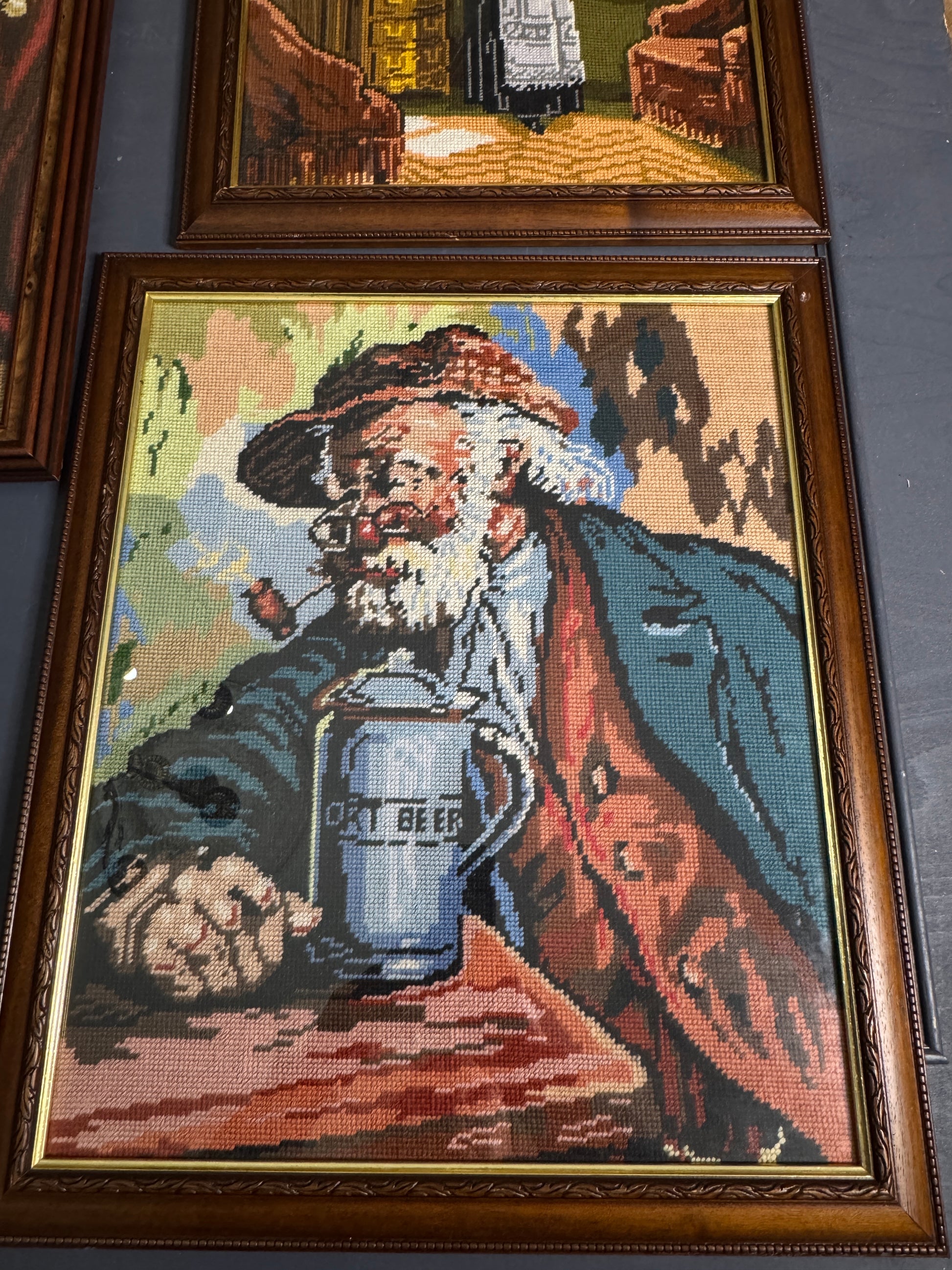 Hand-Stitched Gobelin Embroidery Art – Portrait of an Old Man with Beer