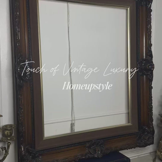 A true statement of craftsmanship and elegance — this vintage thick, heavy wooden frame features intricate hand-carved detailing in the Louis-style, exuding timeless European sophistication. The ornate scrollwork and floral motifs highlight the artistry of traditional design, making it an exquisite piece for framing fine art, mirrors, or as a decorative object on its own.