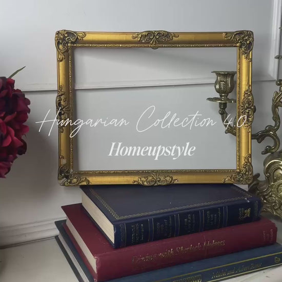 – A stunning vintage Hungarian ornate gold frame sourced from Budapest. Features intricate detailing and timeless European elegance, perfect for showcasing artwork, mirrors, or as a statement décor piece in any sophisticated interior.