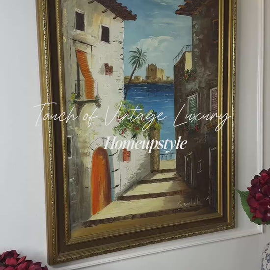 Mediterranean Coastal Village Palette Knife Oil Painting