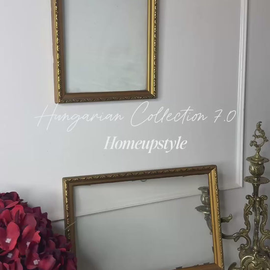 – A stunning vintage Hungarian ornate gold frame sourced from Budapest. Features intricate detailing and timeless European elegance, perfect for showcasing artwork, mirrors, or as a statement décor piece in any sophisticated interior.