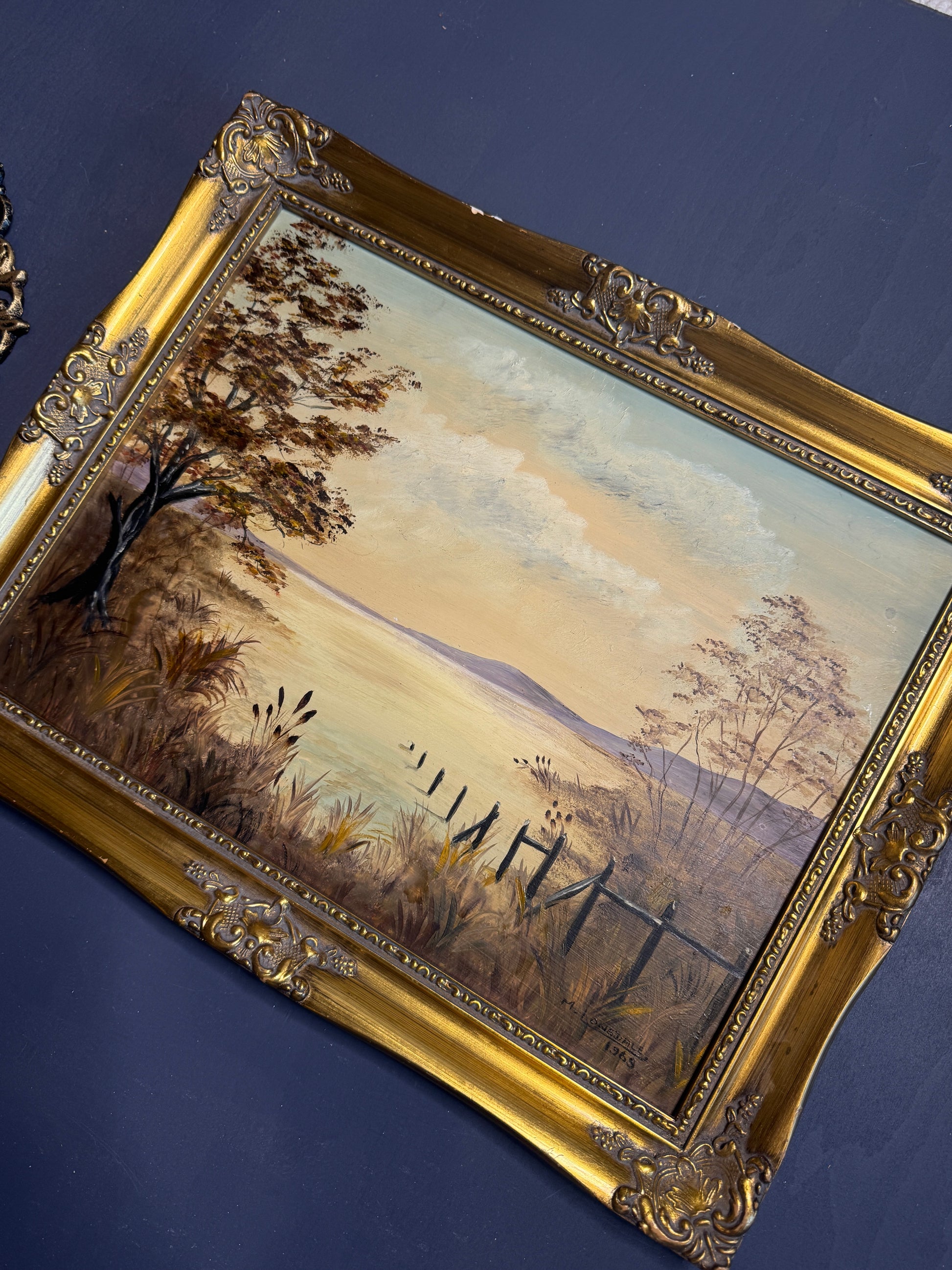 Signed Vintage Oil Painting in a Gold Gilt Frame - The Lake by M. Lonsdale (1969)