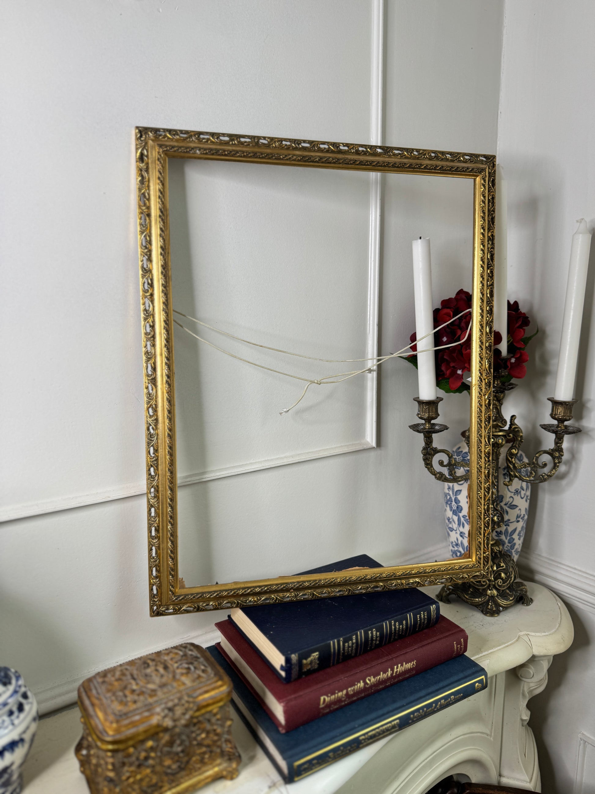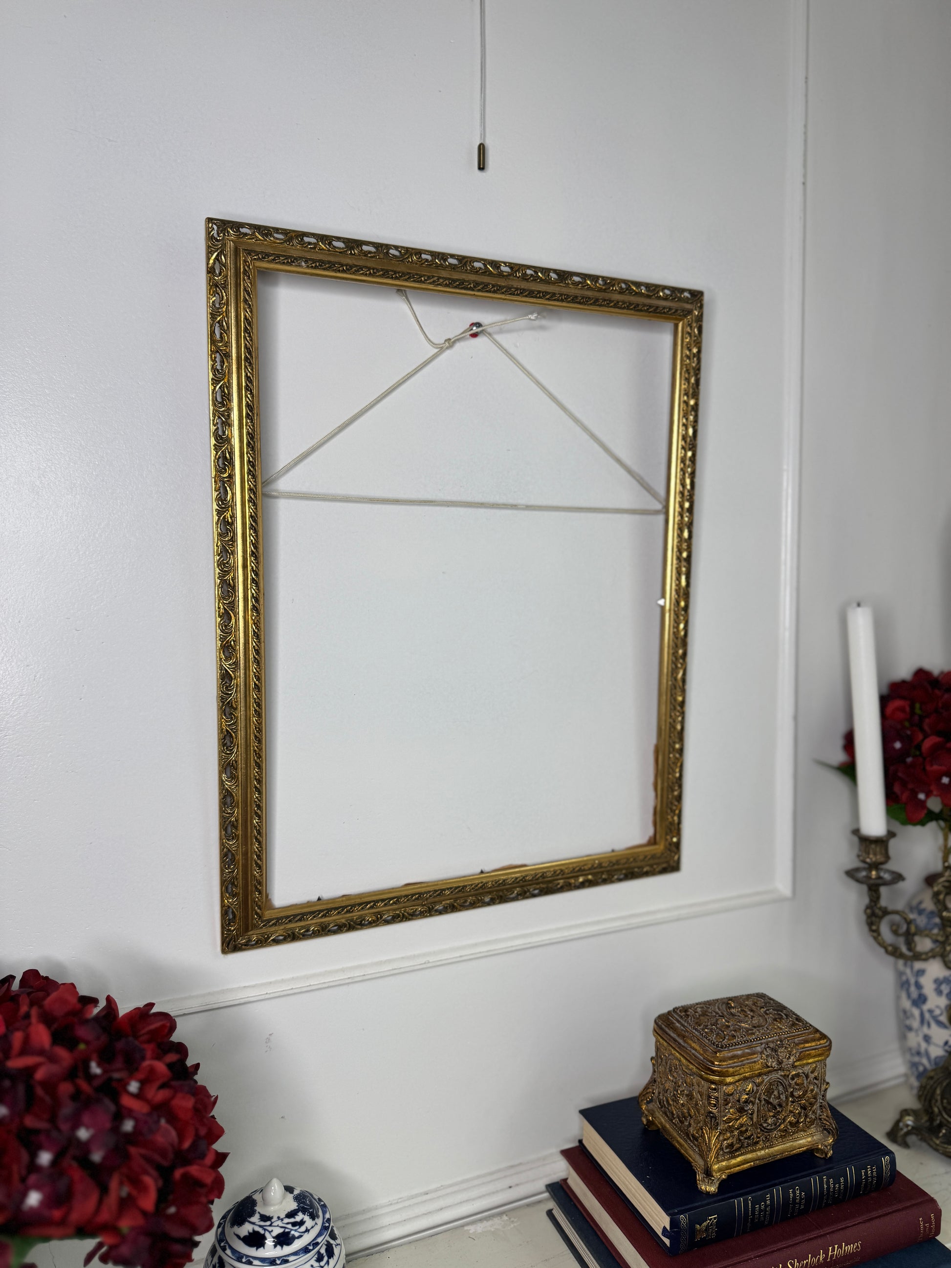 This medium double slim gilt ornate frame exudes timeless sophistication and understated luxury. Featuring a finely layered slim profile with intricate baroque-inspired carvings, its warm gold finish adds an elegant glow to any interior setting.