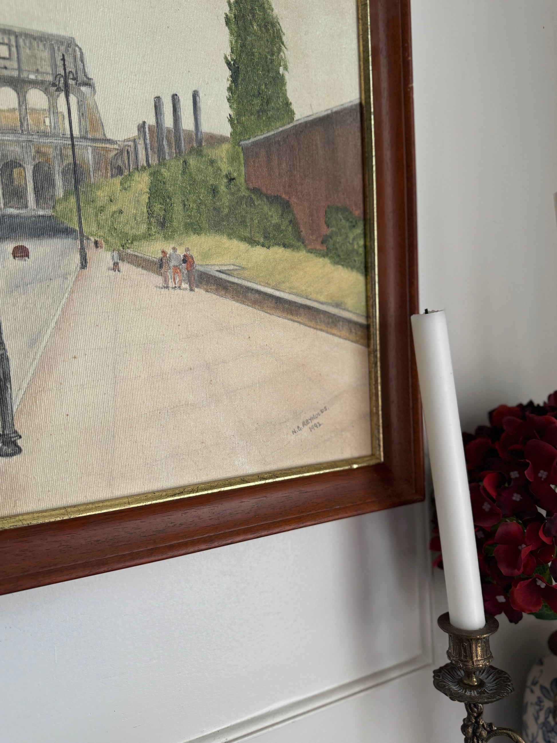 This captivating oil painting is set in a vintage wooden frame and was created by N.G. Reynolds, a late artist from Solihull known for his rich, worldly perspective. Throughout his life, Reynolds travelled extensively, capturing diverse cultures, landscapes, and scenes from around the globe in his artwork.