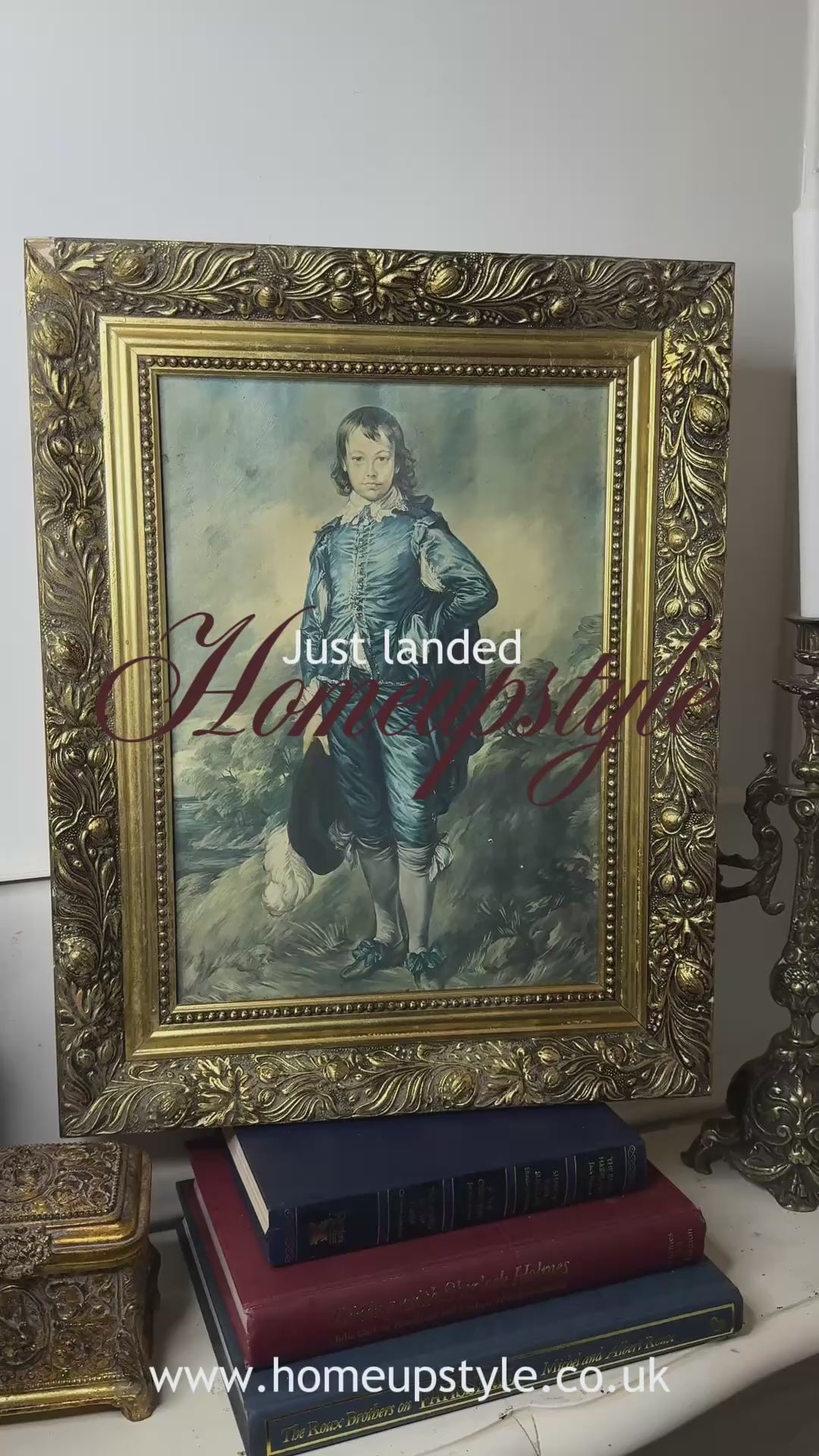 Bring timeless grandeur into your space with this textured reproduction print of The Blue Boy by Thomas Gainsborough, one of the most iconic portraits in art history. Housed in our exquisite Belvoir frame — a vintage-style, heavily detailed gilt frame — this piece blends 18th-century elegance with vintage interior flair.