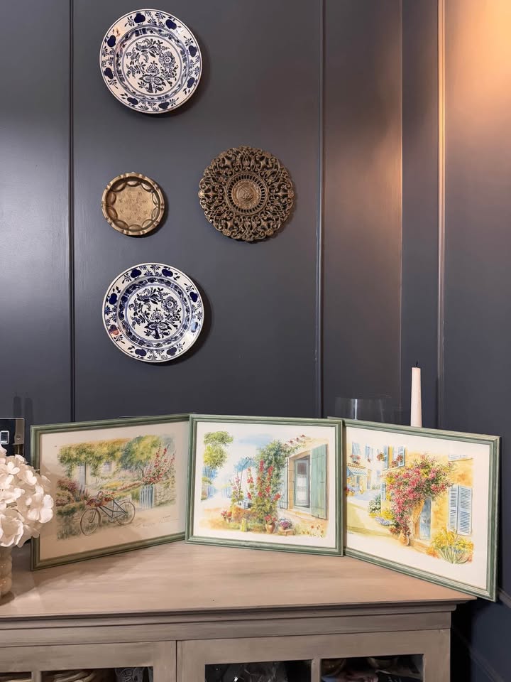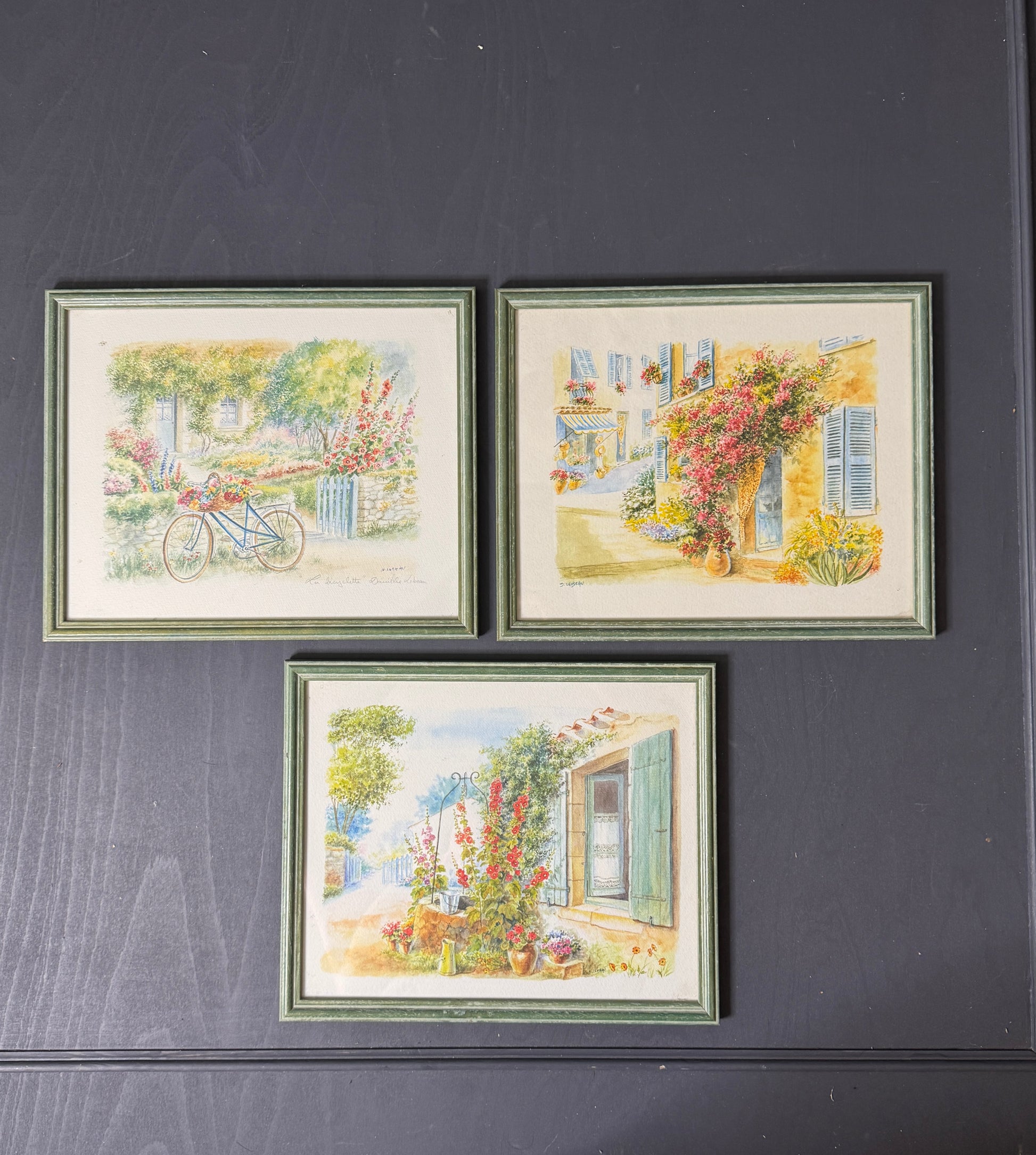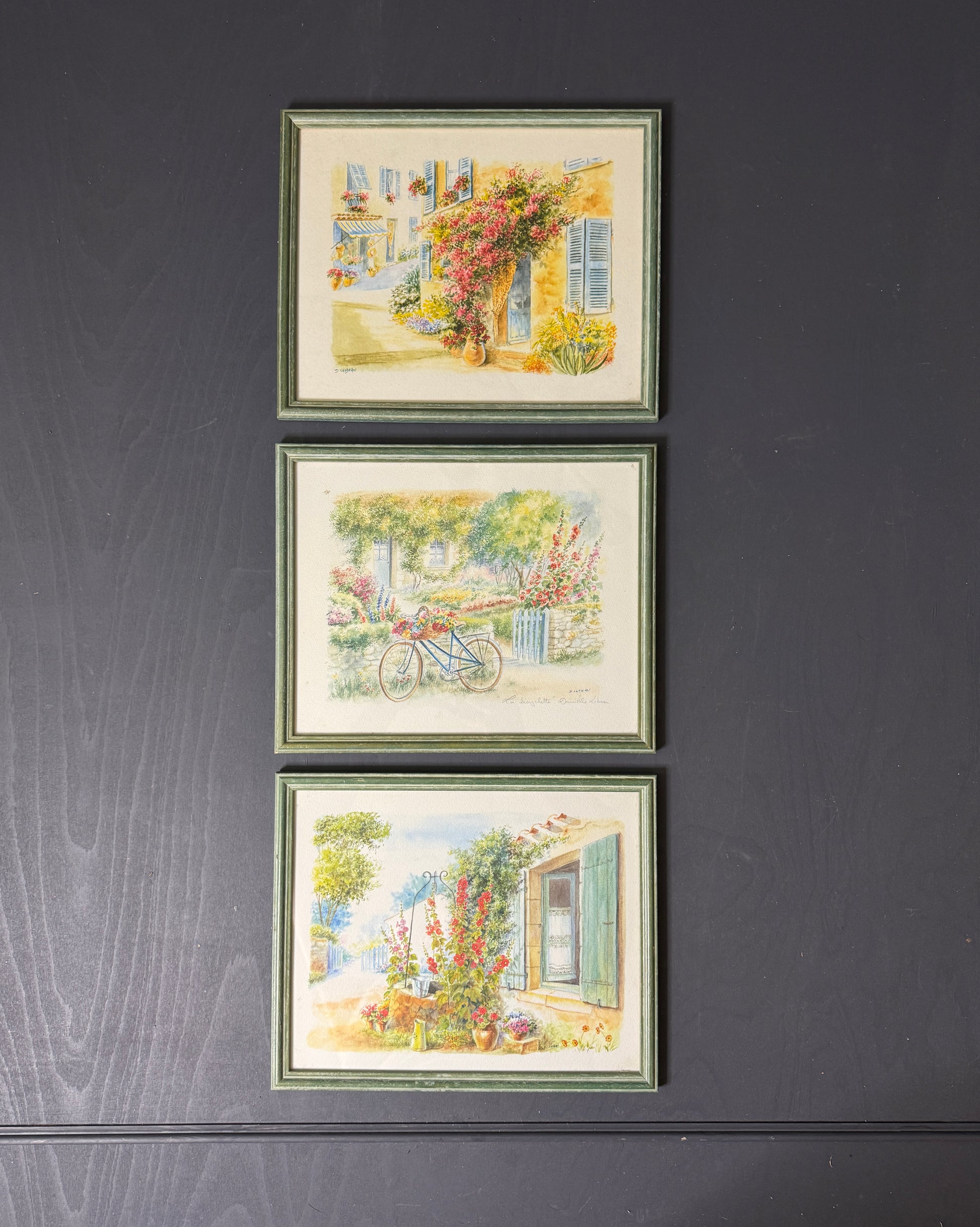 The artwork features gentle tones and elegant subjects, ideal for lovers of French country, shabby chic, or vintage European interiors. Each print is housed in a coordinating vintage-style frame, ready to hang as a harmonious trio or spread across different rooms for a cohesive aesthetic.