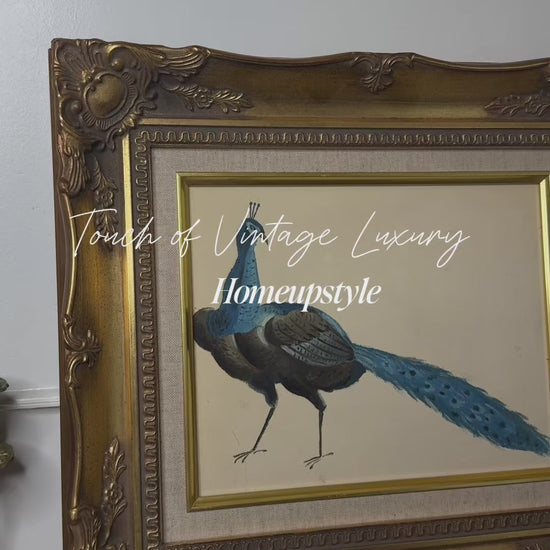 Housed in an ornate thick gold Louis-style gilt frame, this piece radiates opulence and old-world charm. The intricate detailing of the frame perfectly complements the vibrant hues of the peacock, creating a stunning statement for any refined interior — from grand hallways to classic living spaces.