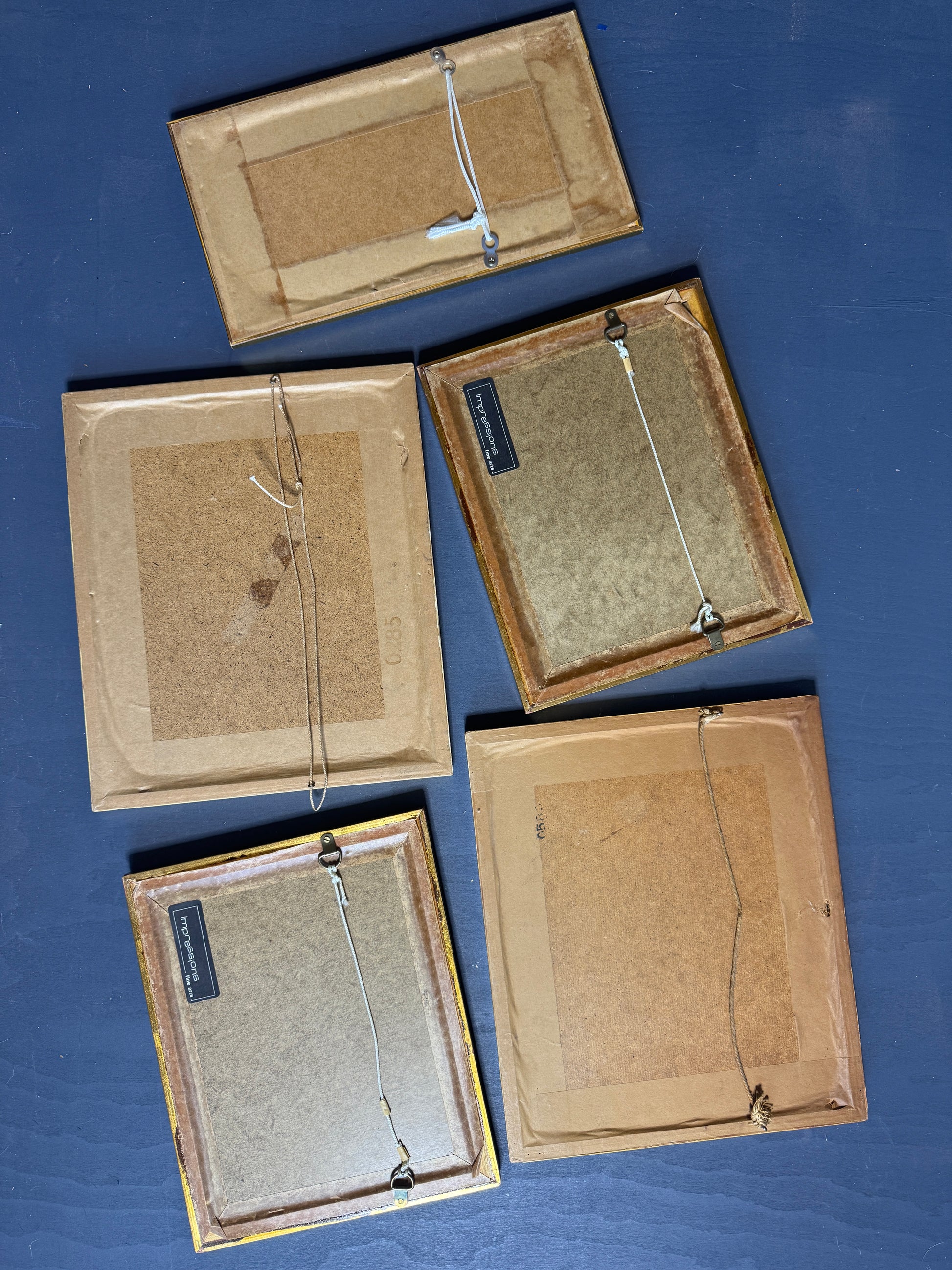 Each frame has been carefully selected to complement the vintage prints inside, offering a harmonious gallery set that feels curated, historic, and luxuriously coordinated.
