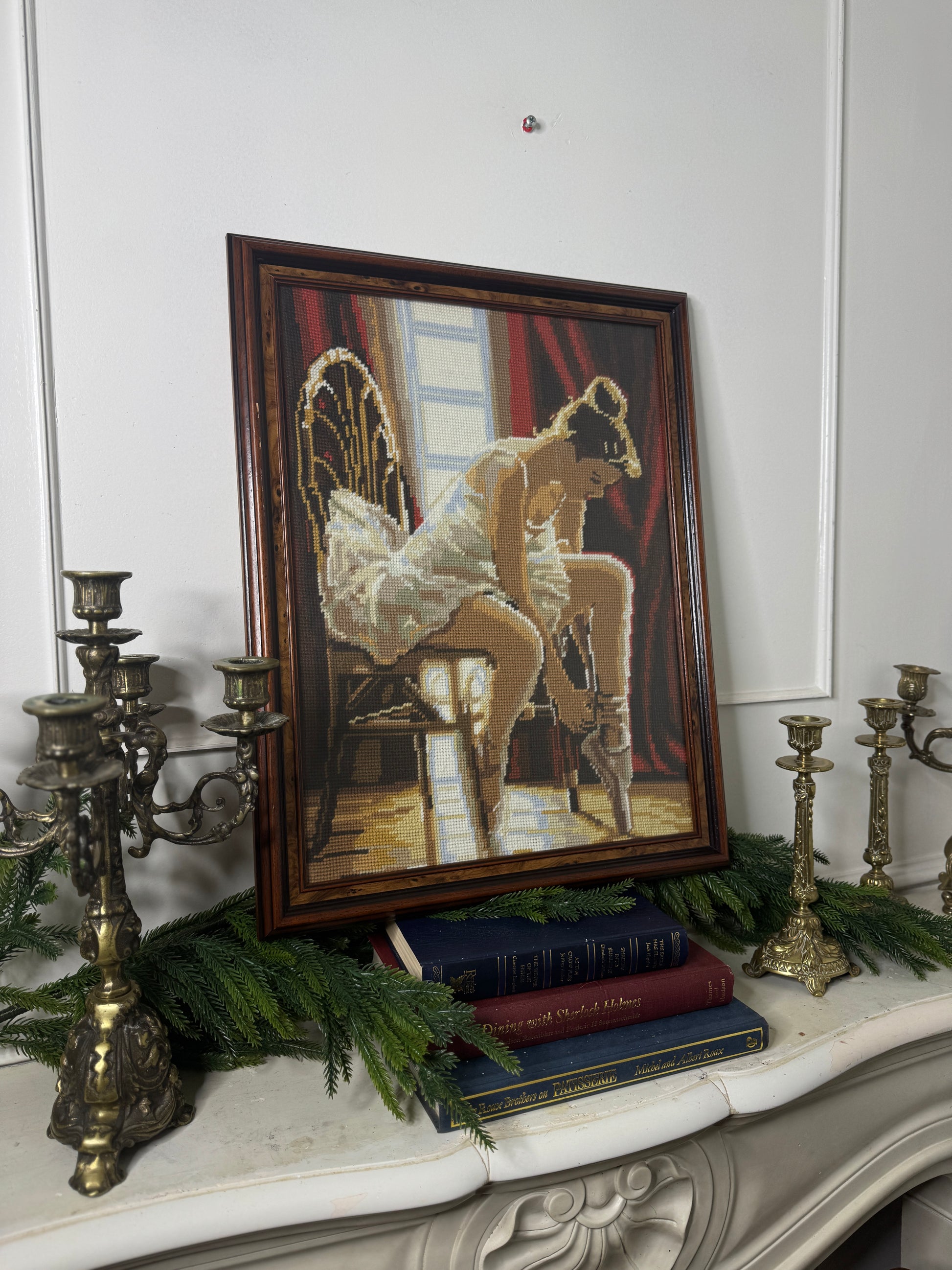🩰 “The Graceful Dancer” – Hand-Stitched Gobelin Embroidery Art | Vintage Handmade Ballet Tapestry (52 x 41 cm)