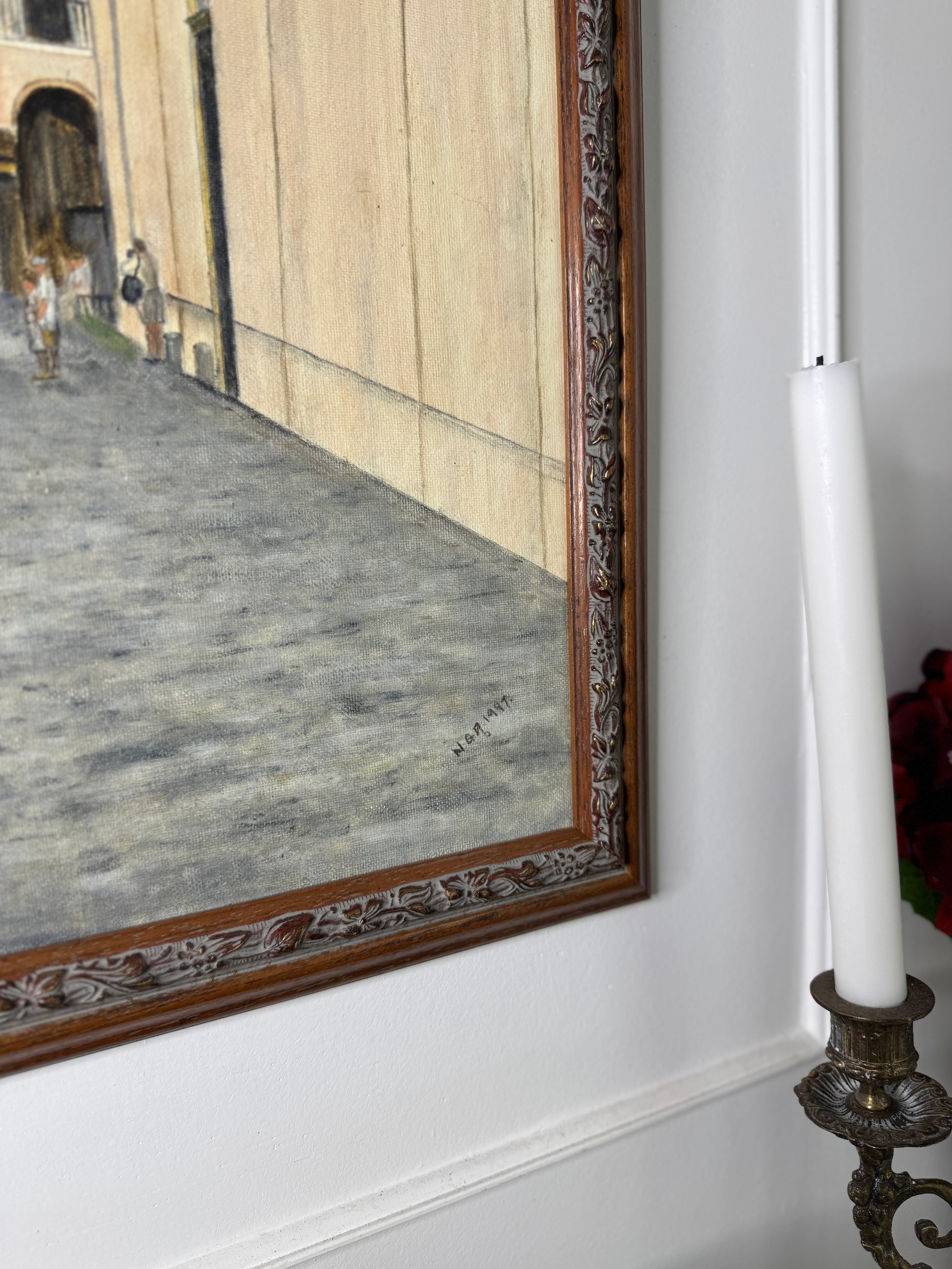 This captivating oil painting is set in a vintage wooden frame and was created by N.G. Reynolds, a late artist from Solihull known for his rich, worldly perspective. Throughout his life, Reynolds travelled extensively, capturing diverse cultures, landscapes, and scenes from around the globe in his artwork.