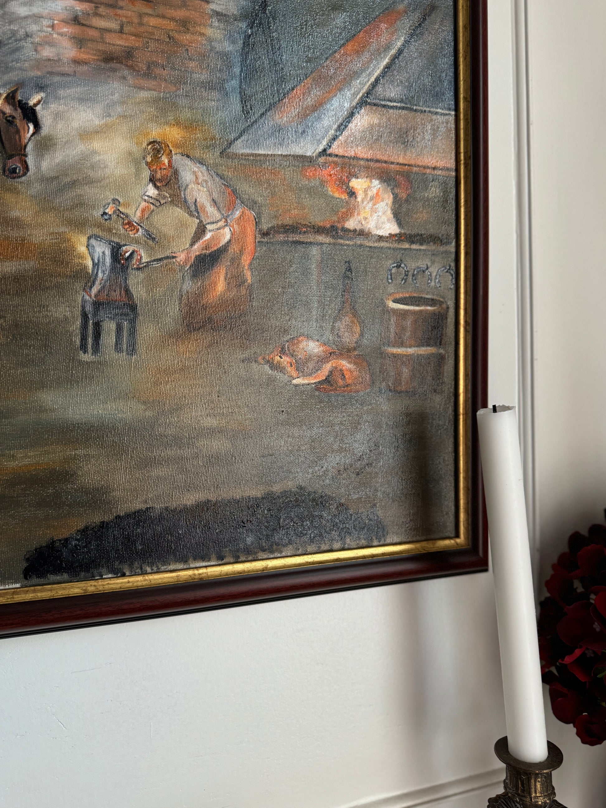 This piece is a beautiful example of his talent and storytelling through paint. Several of his original works are available in our shop—each one unique and full of character.