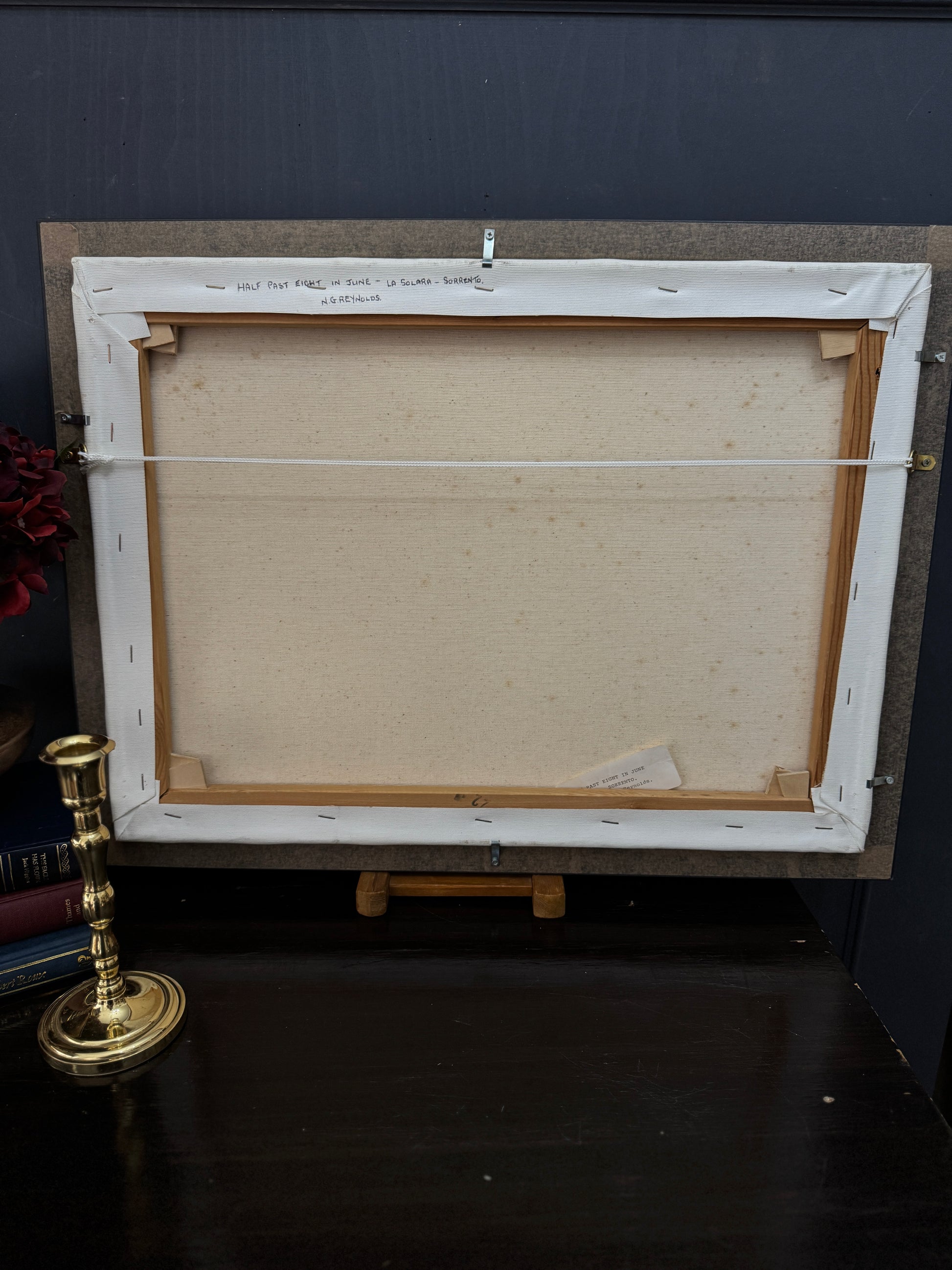 This captivating oil painting is set in a vintage wooden frame and was created by N.G. Reynolds, a late artist from Solihull known for his rich, worldly perspective. Throughout his life, Reynolds travelled extensively, capturing diverse cultures, landscapes, and scenes from around the globe in his artwork.