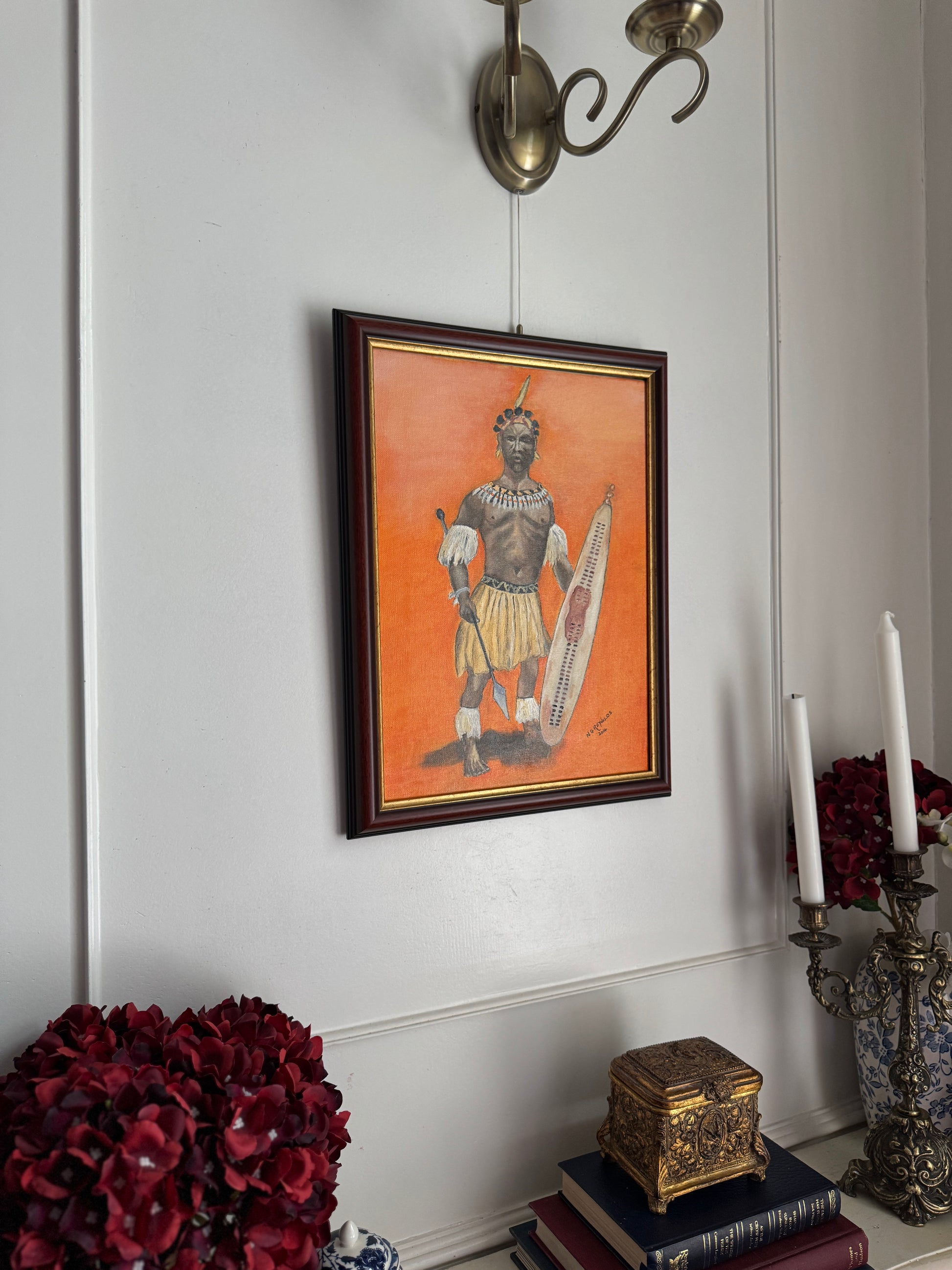 This striking artwork captures a native surfer immersed in the powerful rhythm of the ocean, brought to life with bold African-inspired colors and patterns. The painting melds the energy of the waves with cultural vibrancy, reflecting a deep connection between the surfer, nature, and heritage. Rich earthy tones and bright accents convey movement and passion, making this piece a celebration of tradition meeting adventure.