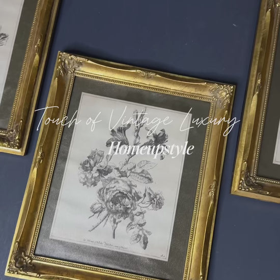 Featuring a harmonious mix of Veloura frames, gilt-glazed gold accents, and vintage-inspired prints, this collection blends opulence with nostalgia. Each piece is carefully chosen to complement the next, creating a cohesive arrangement that feels both sophisticated and full of character.
