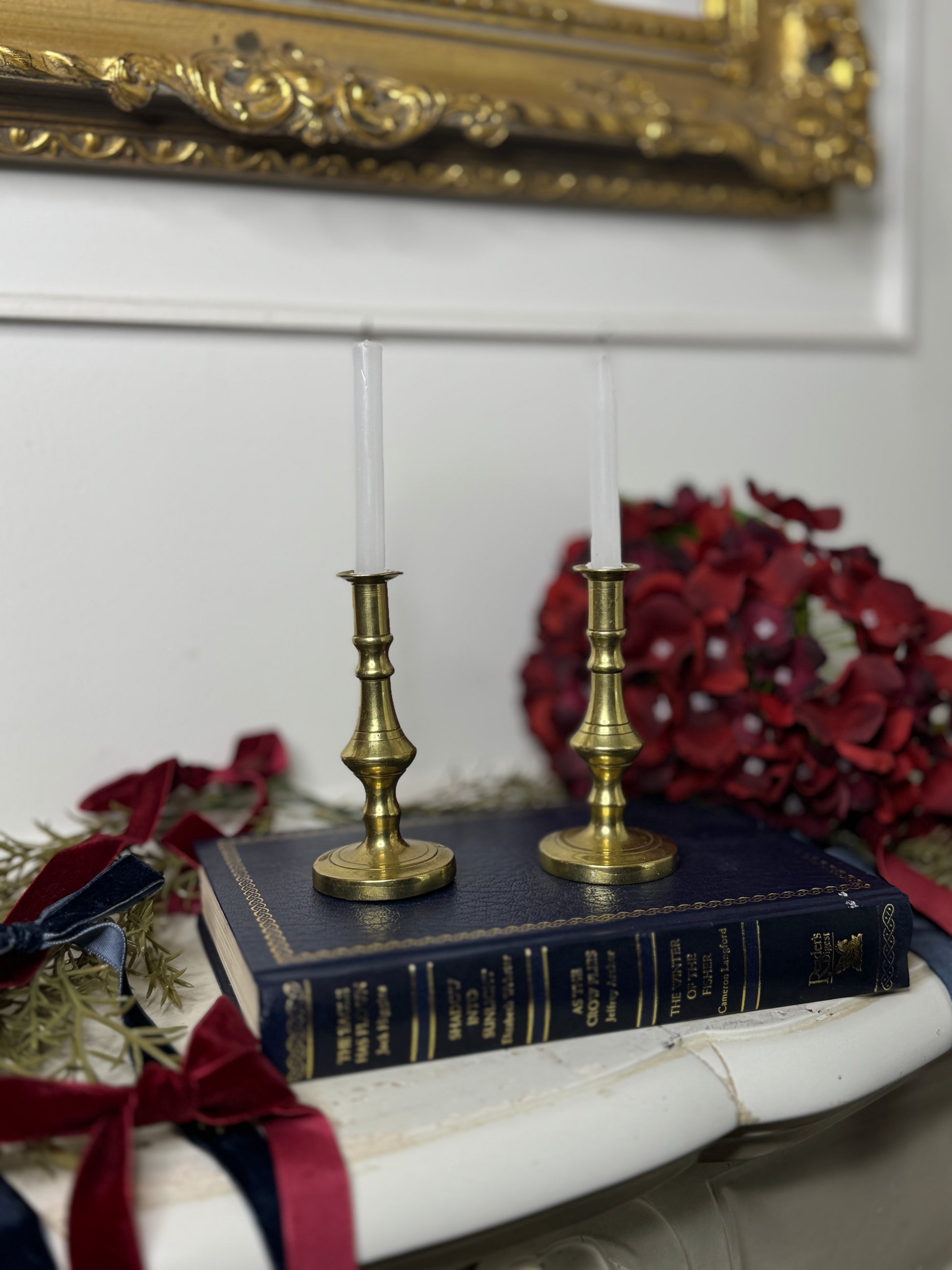 This elegant pair of vintage brass candlesticks features a timeless silhouette and a beautifully aged patina, perfect for adding warmth and character to your home. A classic choice for lovers of modern rustic, antique, or boho-style décor, these candlesticks bring a touch of old-world charm to any space.