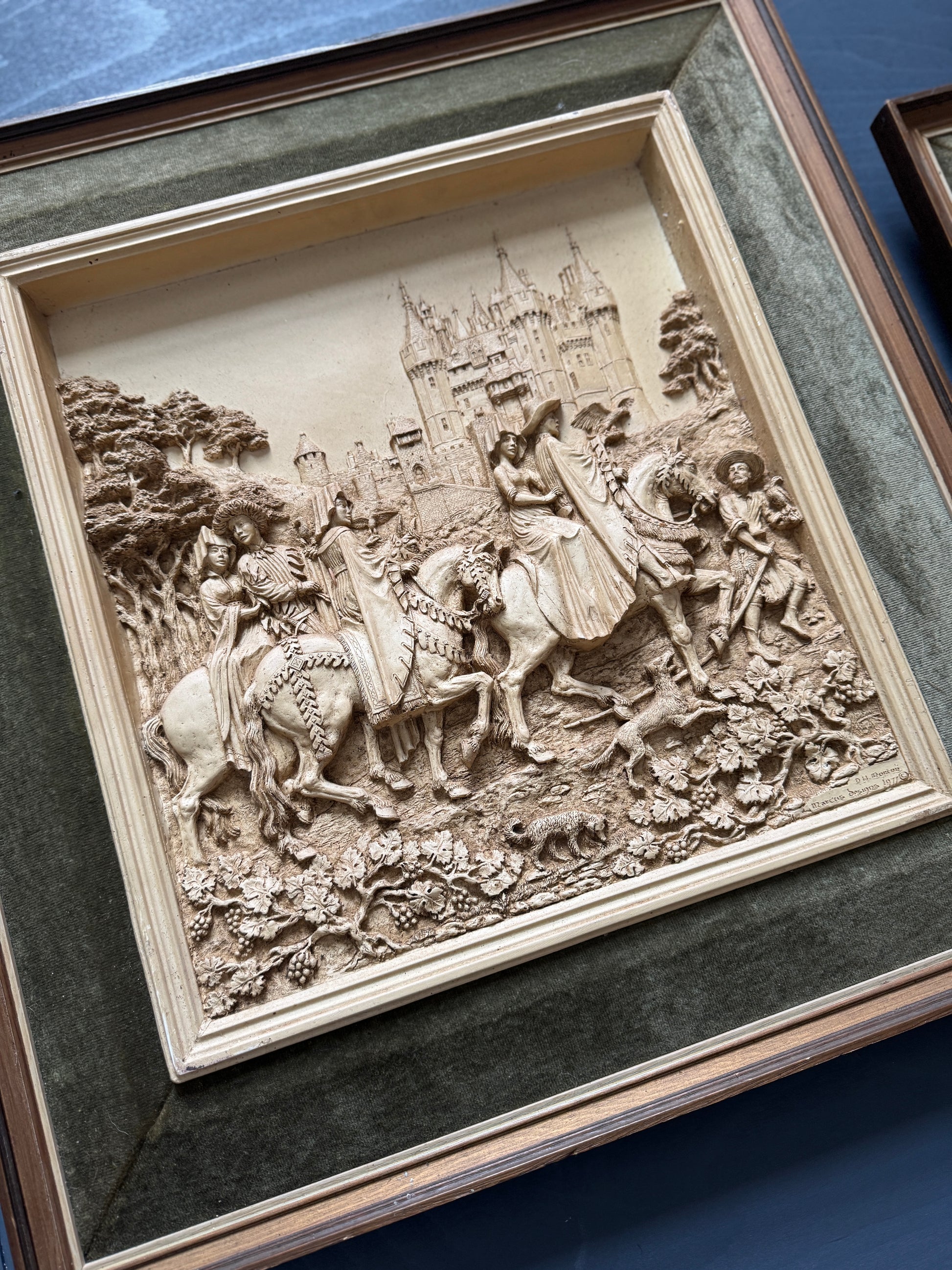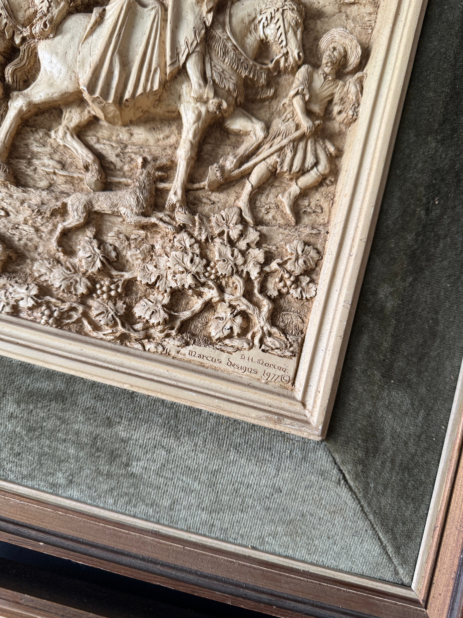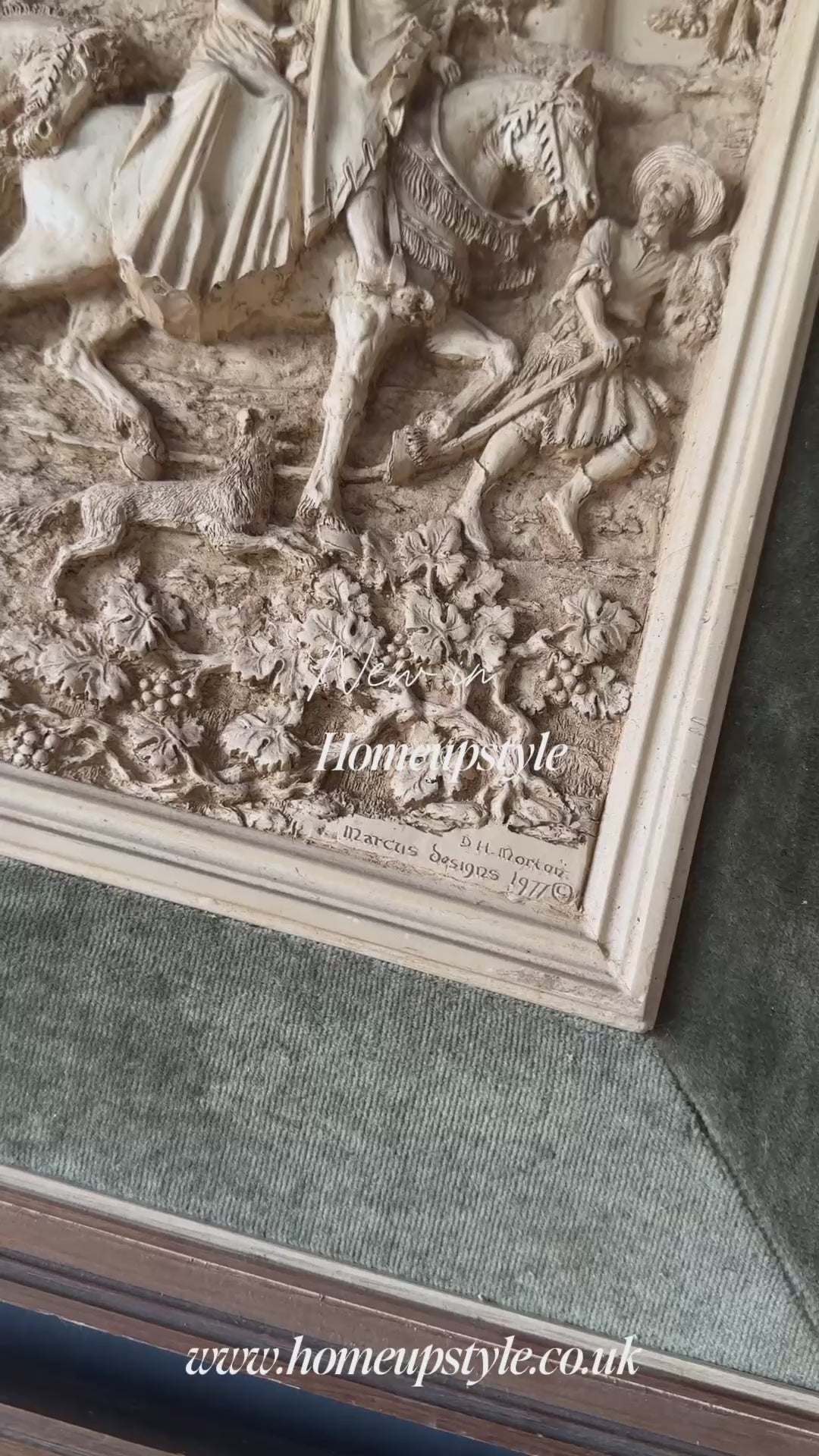 Discover the charm of Marcus Designs—a renowned maker of intricately handcrafted wall art and plaques from the 1970s and early 1980s. Known for their detailed raised relief scenes and unique storytelling through art, each piece was made in England with exceptional craftsmanship, often depicting historical, romantic, or pastoral themes.