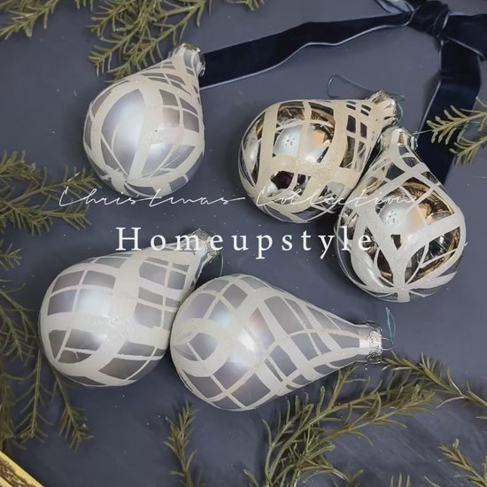 Vintage English Glass Christmas Bauble Set of 5 | 11 x 7 cm | European Holiday Decorations
