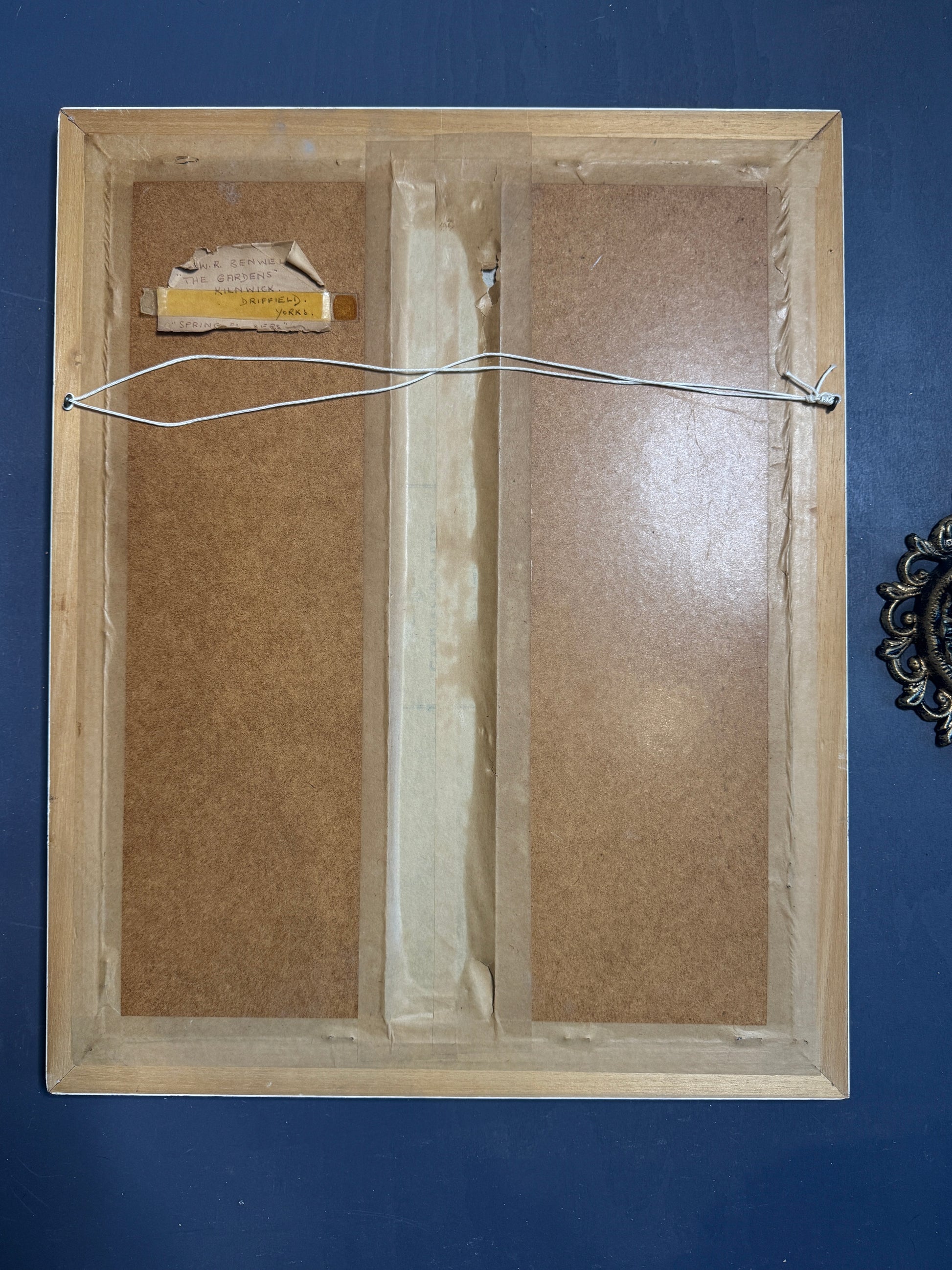 Bring colour, charm, and a touch of spring into your home with this bright floral oil painting, beautifully framed in a thick white wooden frame. Signed by the artist and titled “Flowers – The Gardens, Kilnwick, Driffield, York,” this vibrant piece captures the beauty of blooming spring flowers in rich, expressive oil paint.