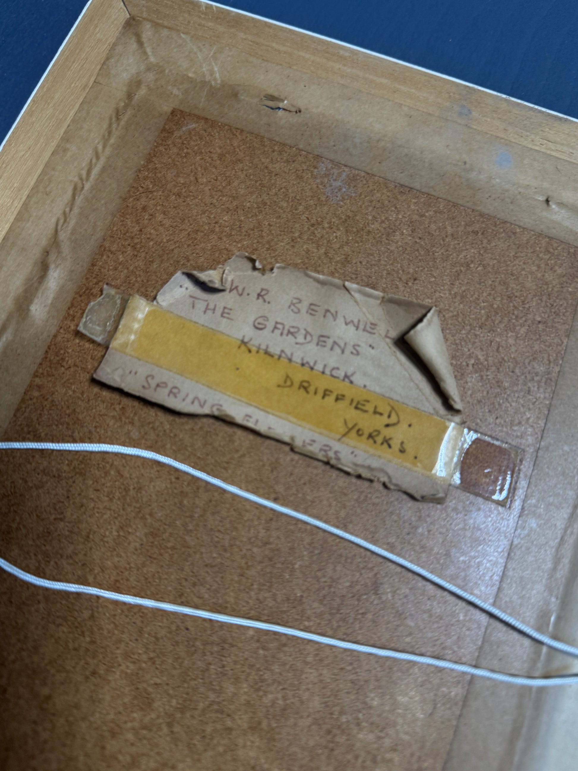 Vintage Floral Oil Painting in White Frame- Spring Blooms at Kilnwick