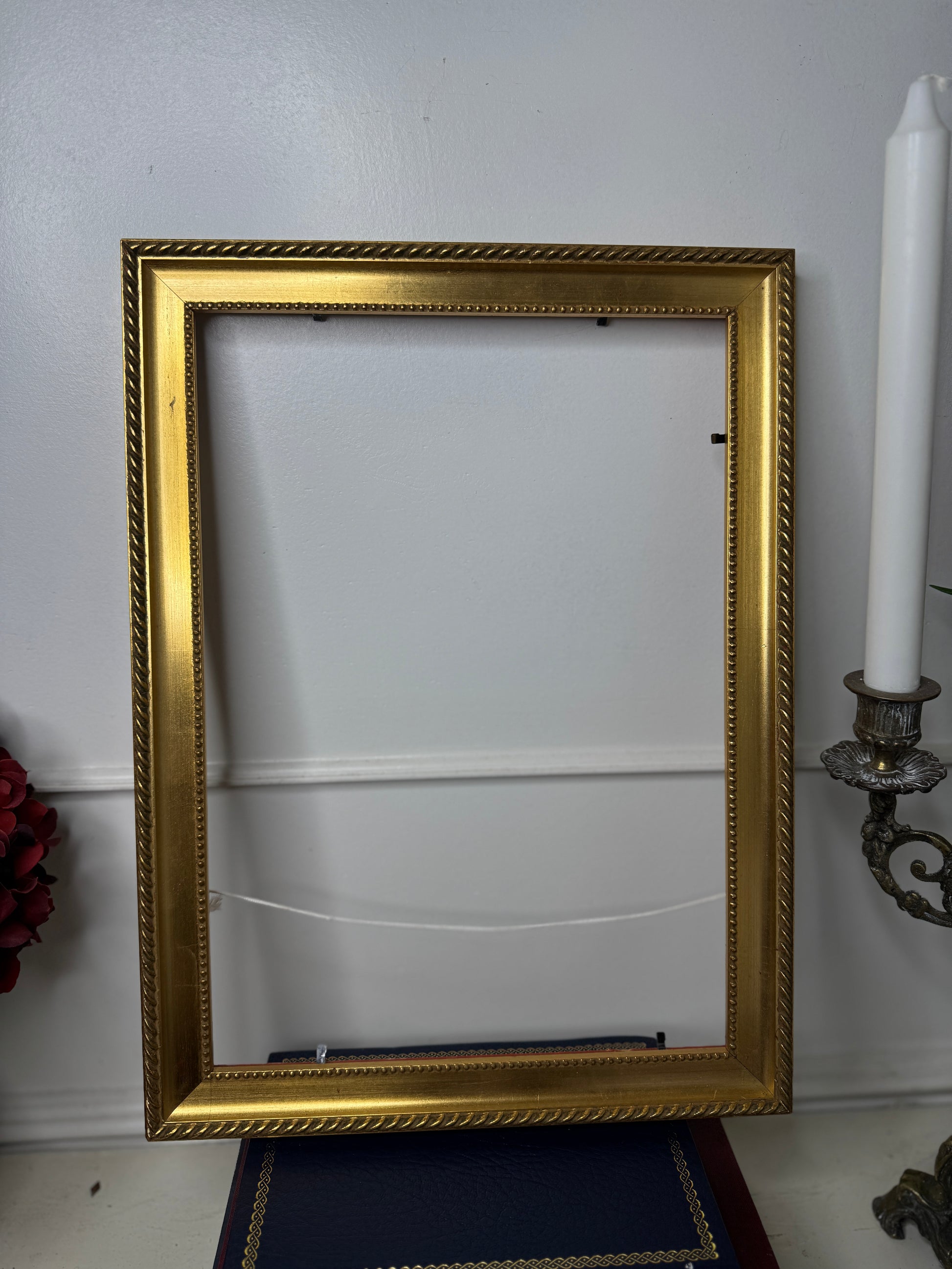 A striking vintage gold gilt frame in our Casablanca design, featuring timeless ornate detailing and a warm gilded finish. This piece embodies elegance and sophistication, making it a perfect choice for framing artwork, photographs, or even as a decorative element on its own.