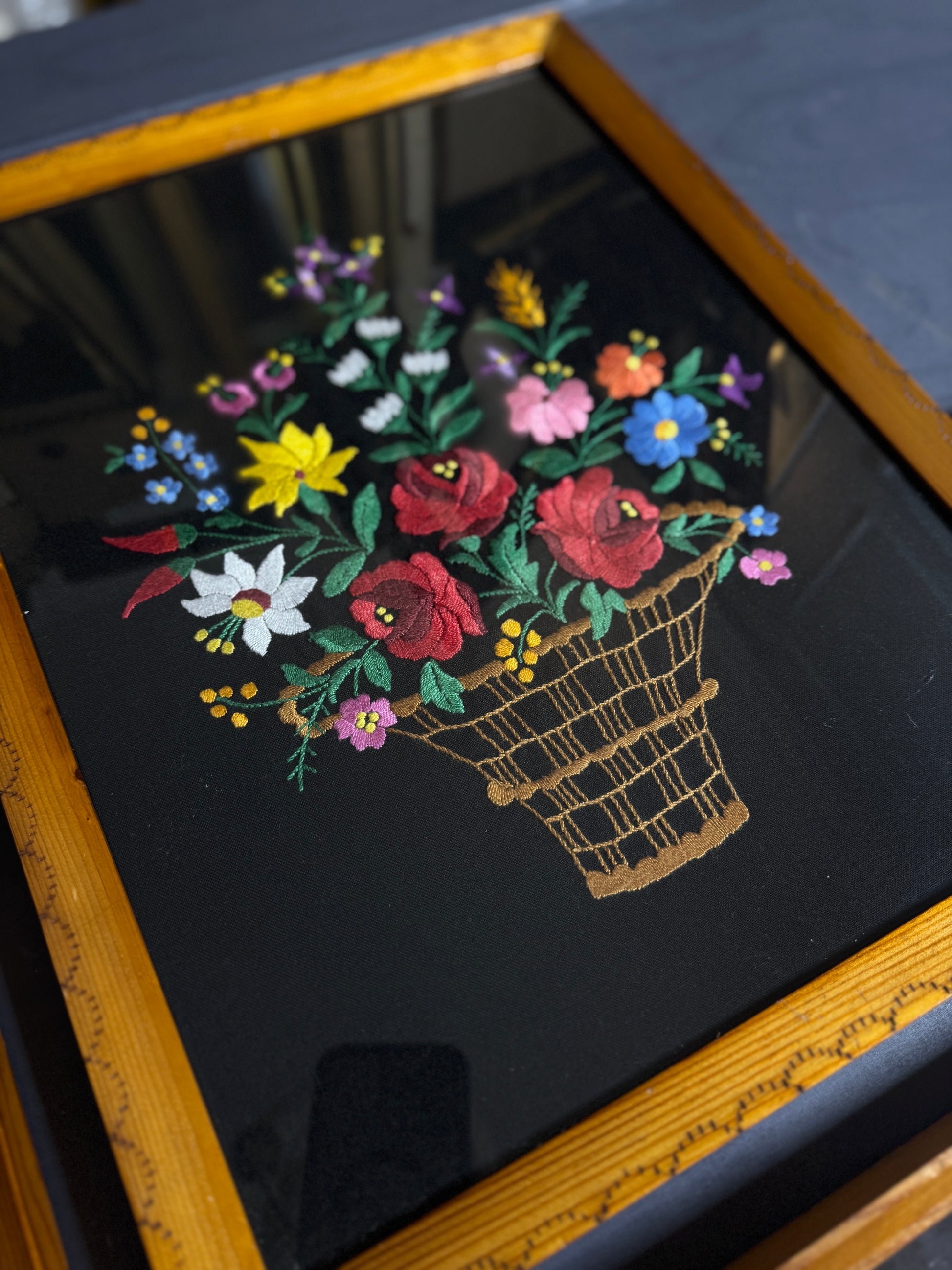 Presenting a beautiful piece of Hungarian heritage: a hand-embroidered Kalocsai wall hanging from the 1960s. This exquisite set showcases the vibrant and intricate Kalocsai embroidery, renowned for its colorful floral patterns and meticulous craftsmanship. Originating from the town of Kalocsa in Hungary, this embroidery style is celebrated for its bright, vivid colors and floral motifs, often featuring roses, tulips, and carnations. Dating back to the mid-19th century, Kalocsai embroidery has become a cherished symbol of Hungarian folk art.