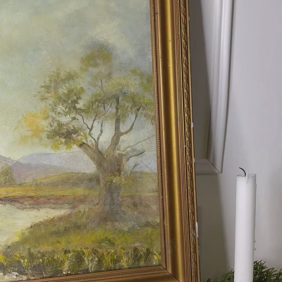 Vintage Landscape Oil Painting by E. Henstock in antique gilt frame : 63 x 48 cm