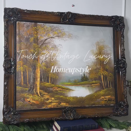 Vintage Oil Painting by W. Johnson — “Peacefulness by the Lake” — Ornate Carved Gilt Louis Frame