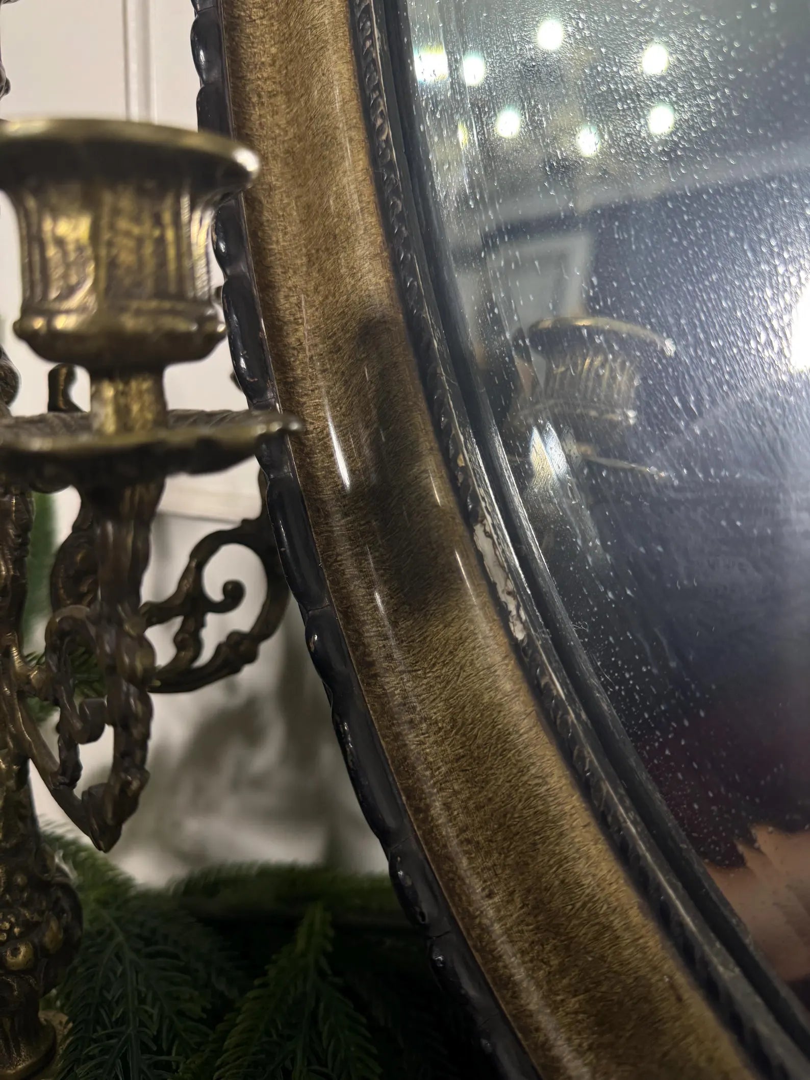 Tiny age spots on the mirror (see pictures) – not noticeable when hung