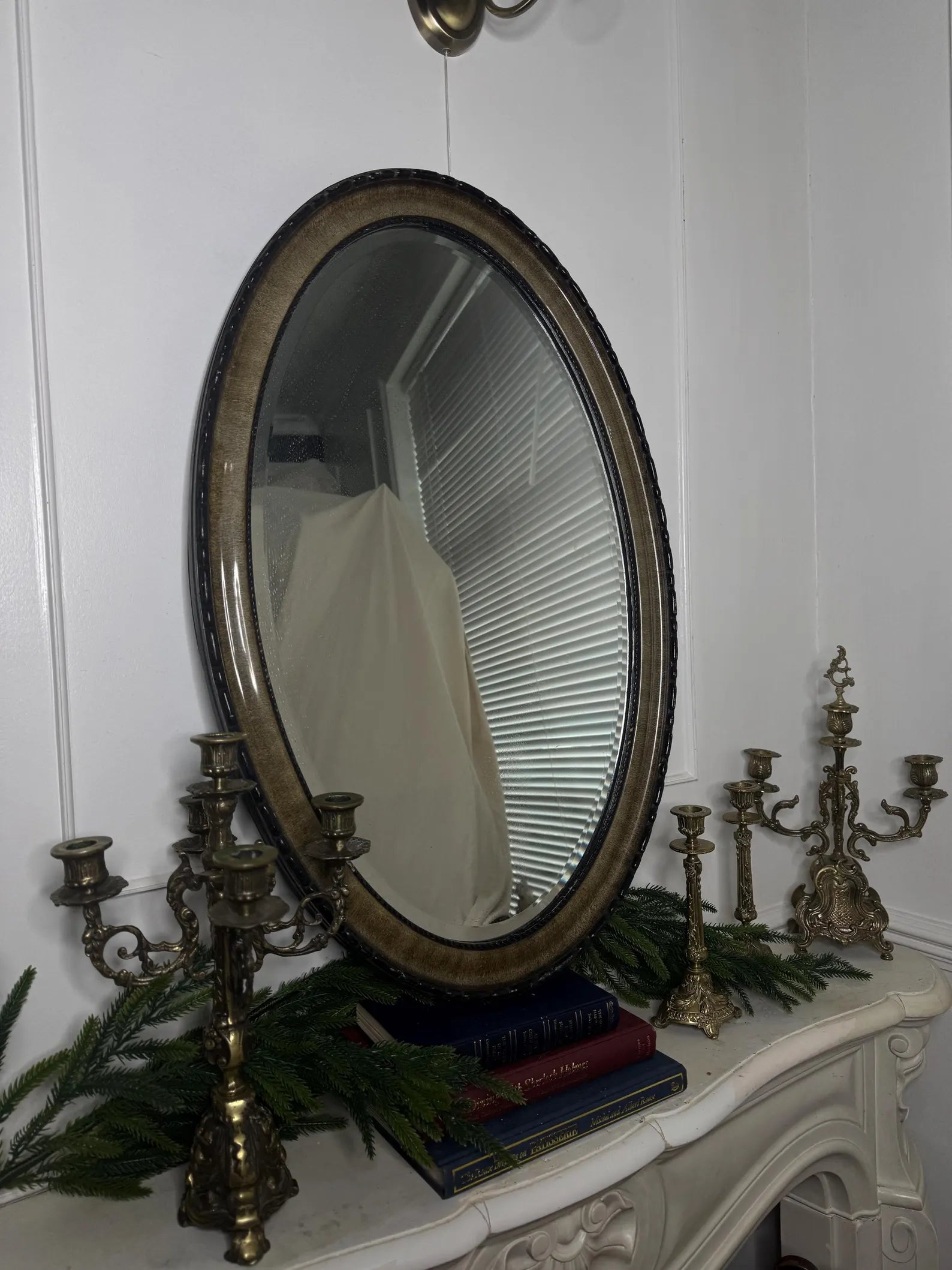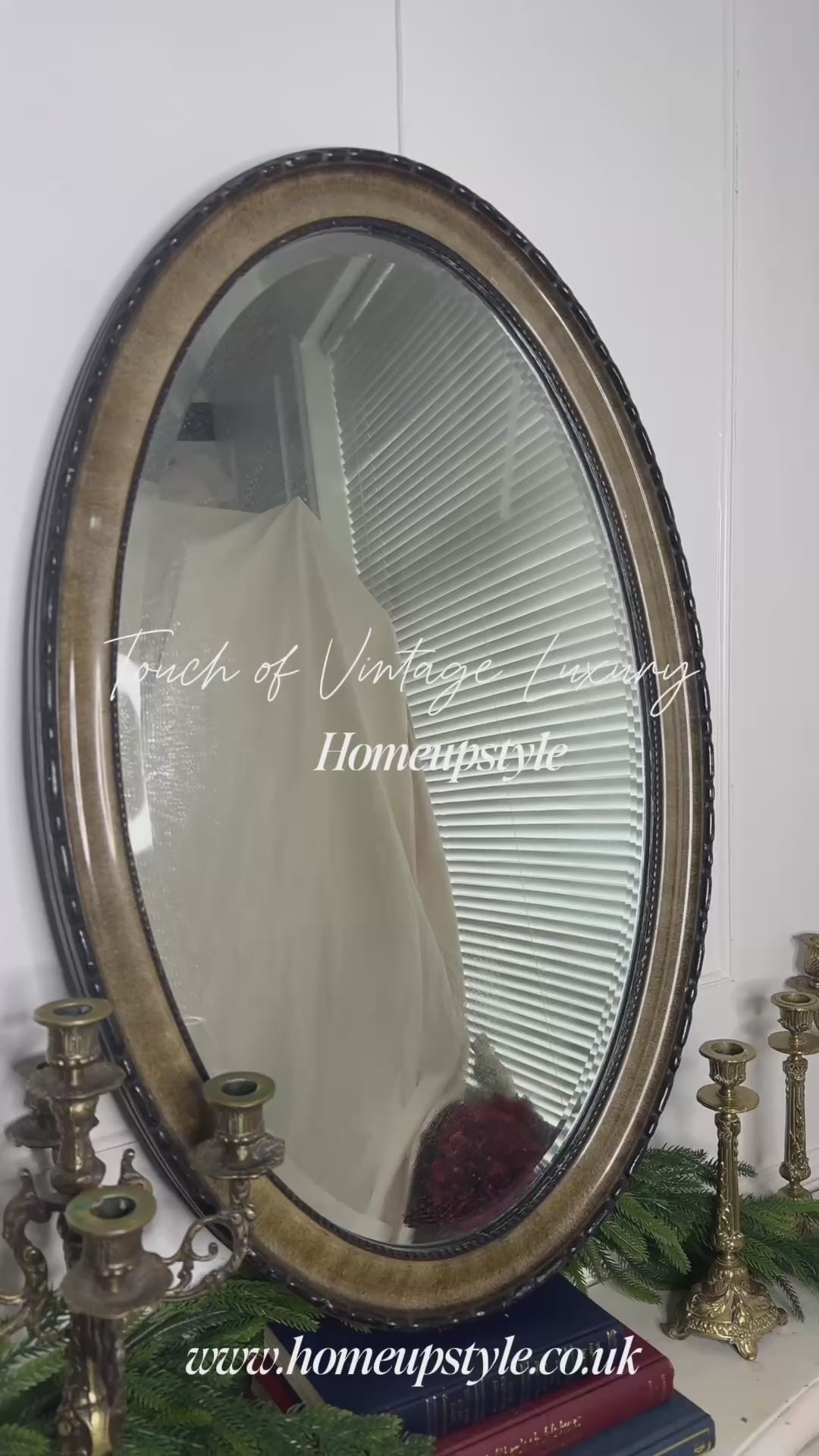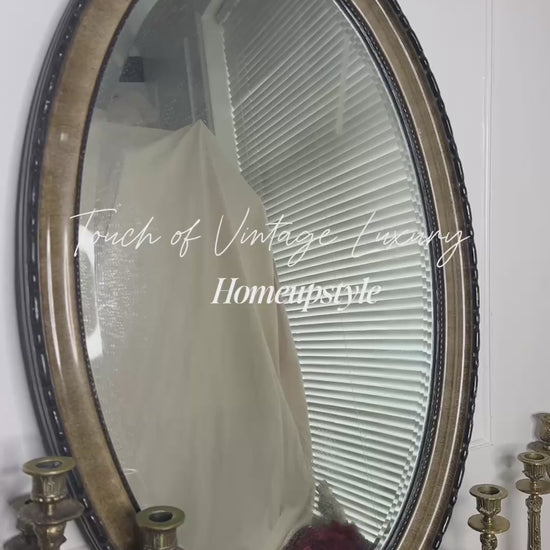 Add elegance and charm to your space with this heavy vintage large oval mirror, featuring a unique ornate frame and a beautifully bevelled edge. Perfect for hallways, living rooms, or bedrooms, this statement piece brings classic style and reflective light to any interior.