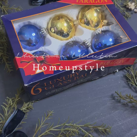 Vintage Polish Glass Christmas Baubles - Gold & Blue